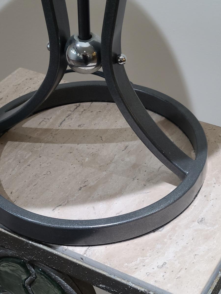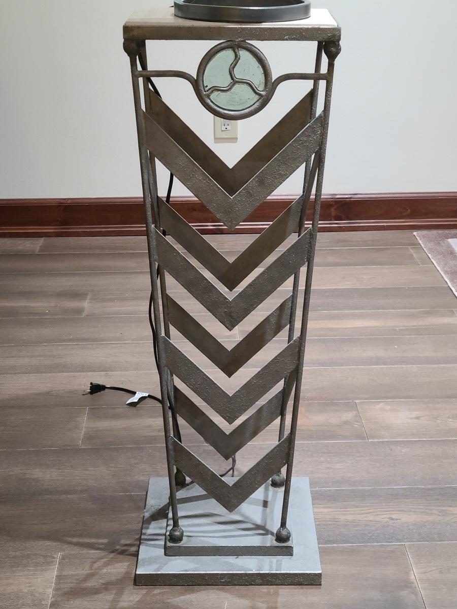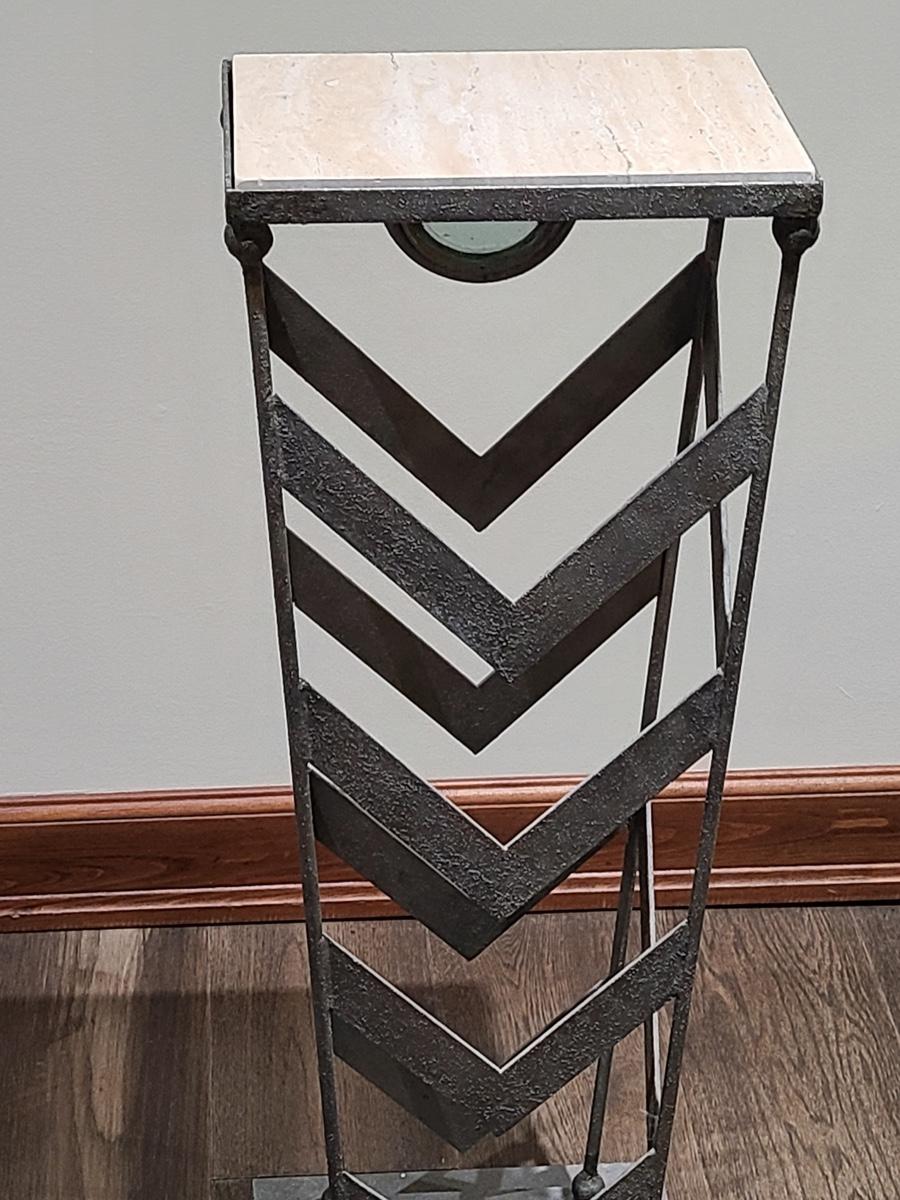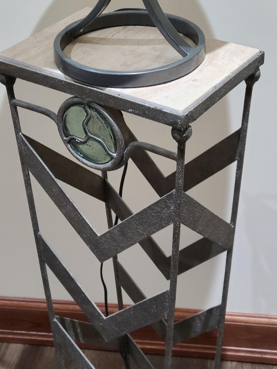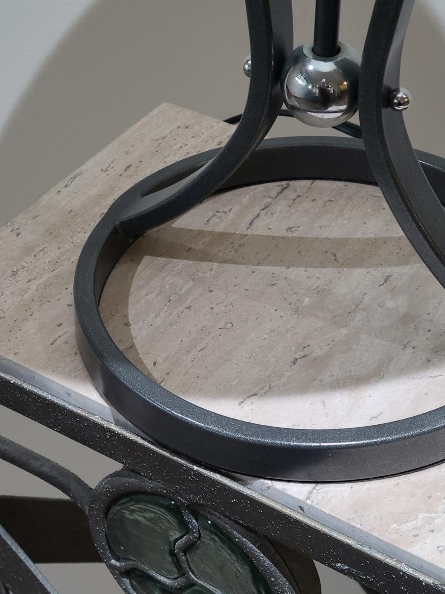 This table is made solid with heavy metal framework accented with glass embellishments on the front. Perfect for a plant stand or accent table. The top is marble and the lamp has silver accents such as chrome and brushed steel. It to is solid. These are on the lower level and will need to be brought upstairs to exit. Please see all pictures as they are the best representation of the items. The pictures show condition, measurements if taken, and what is included in the lot. Due to the large amount that we photograph and the time frame, we are not always able to take measurements. All items unless noted, are pre-owned and have been used. If you purchased furniture, you must bring help. We do not allow one person to carry large furniture out on their own. Bring help, tools and a truck for the safety of our clients homes, and your personal safety. Company policy. Thank you.