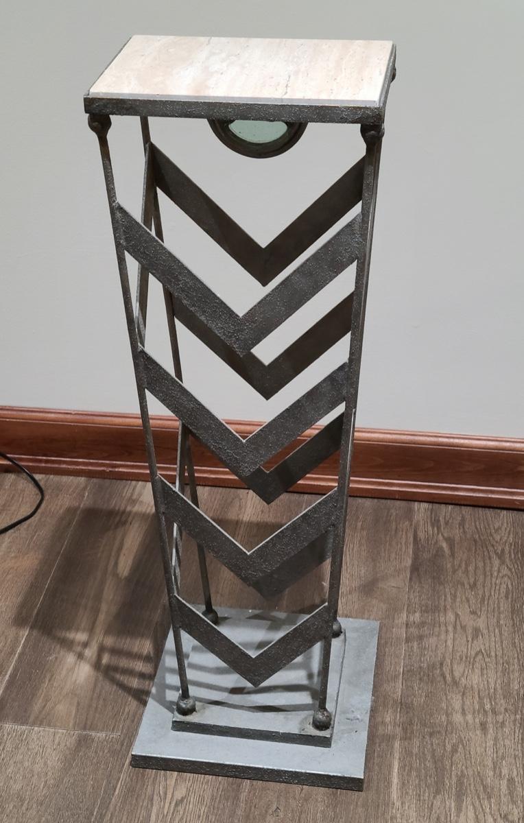 Lot 10: Marble Top Accent Table/Plant Stand with Modern Lamp