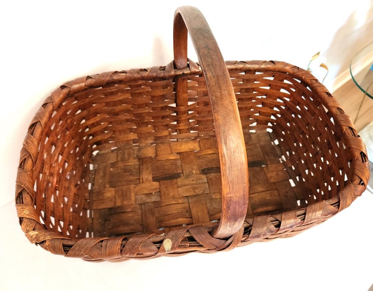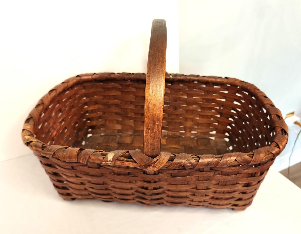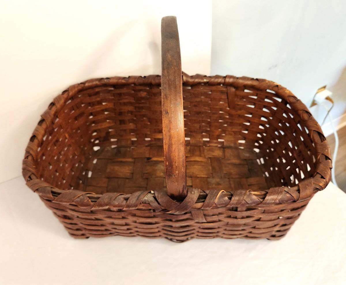 Great older primitive style split oak basket with handle - 19" x 12", 13" tall, Good vintage condition.