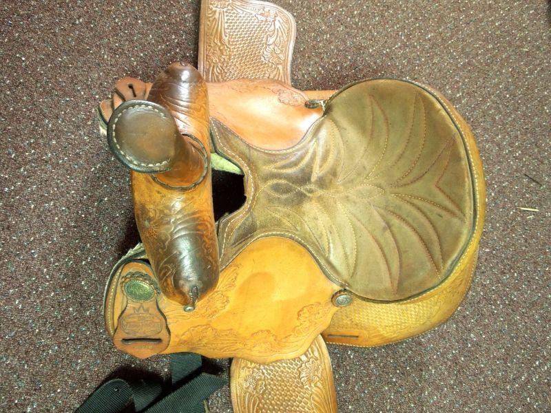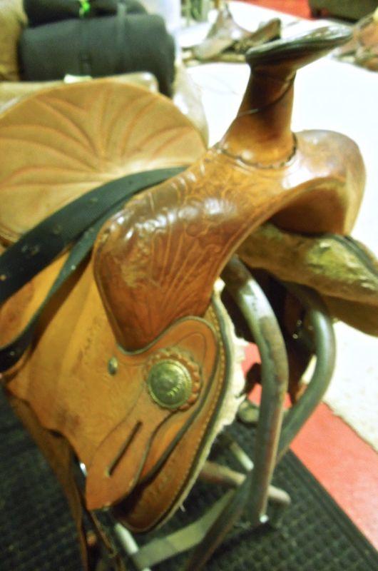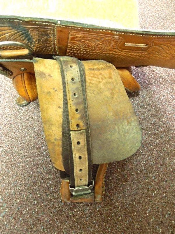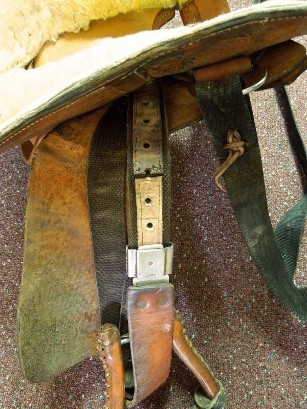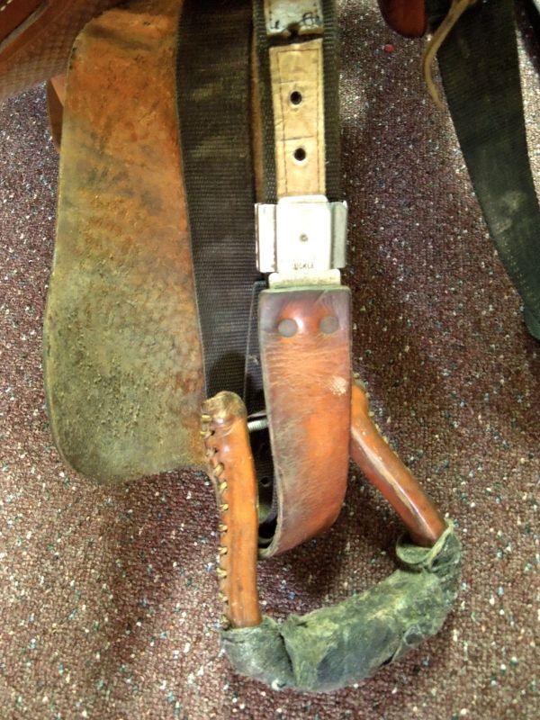 Saddle is in good condition and appears to have been moderately used in addition to being well taken care of. Worn stirrups wrapped in cloth tape, Missing concha under rear back of seat. Prime and ready for many years of future riding, Please see all pictures for a closer look.