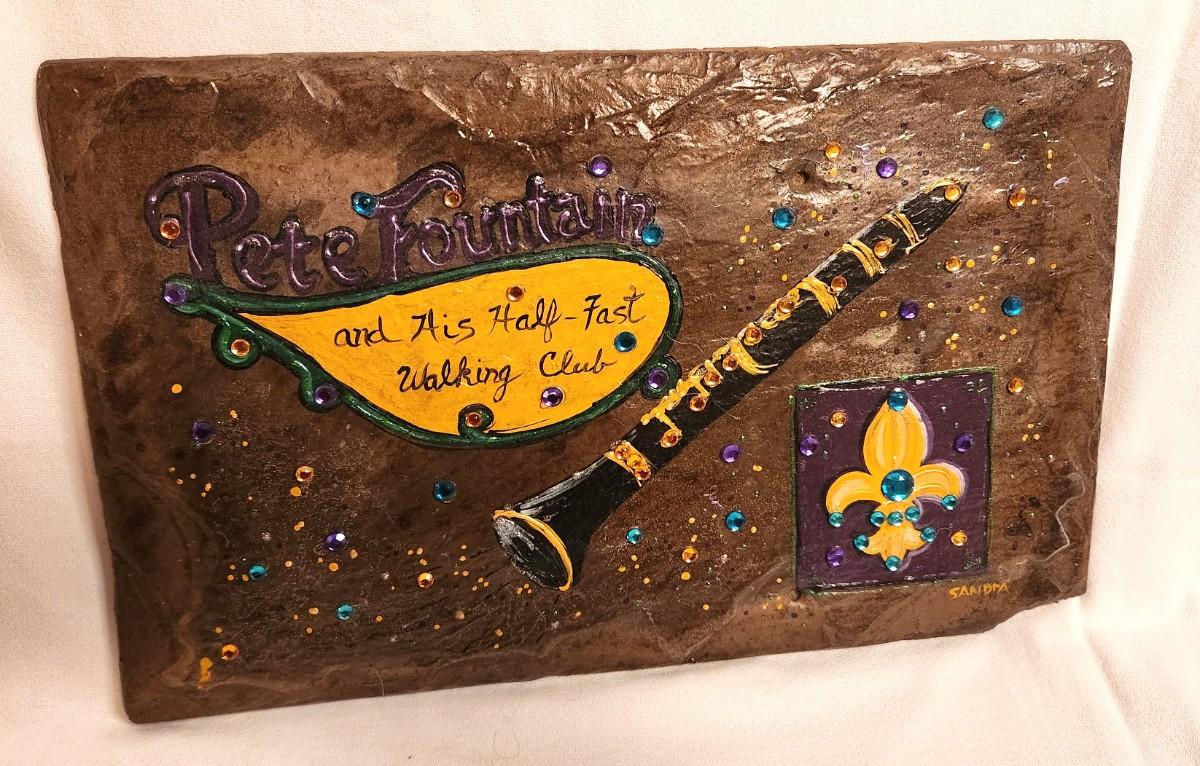 Lot #10 Painted Slate by Sandra Struppeck - "Pete Fountain and His Half-Fast Walking Club"