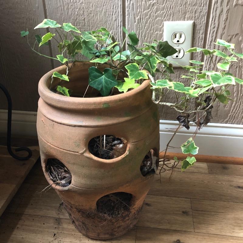 Lot includes 3 planters with plants. These quirky planters would make beautiful patio decor. The plants in them seem to be growing very well. We have a terra-cotta strawberry planter, a white and green pot with built in tray and a plastic pot set in a black metal stand and a unique wood plant holder that needs some glue, see images. Also includes is a wood rolling plant stand. Tallest planter with stand measures 22”H. Local pickup only.