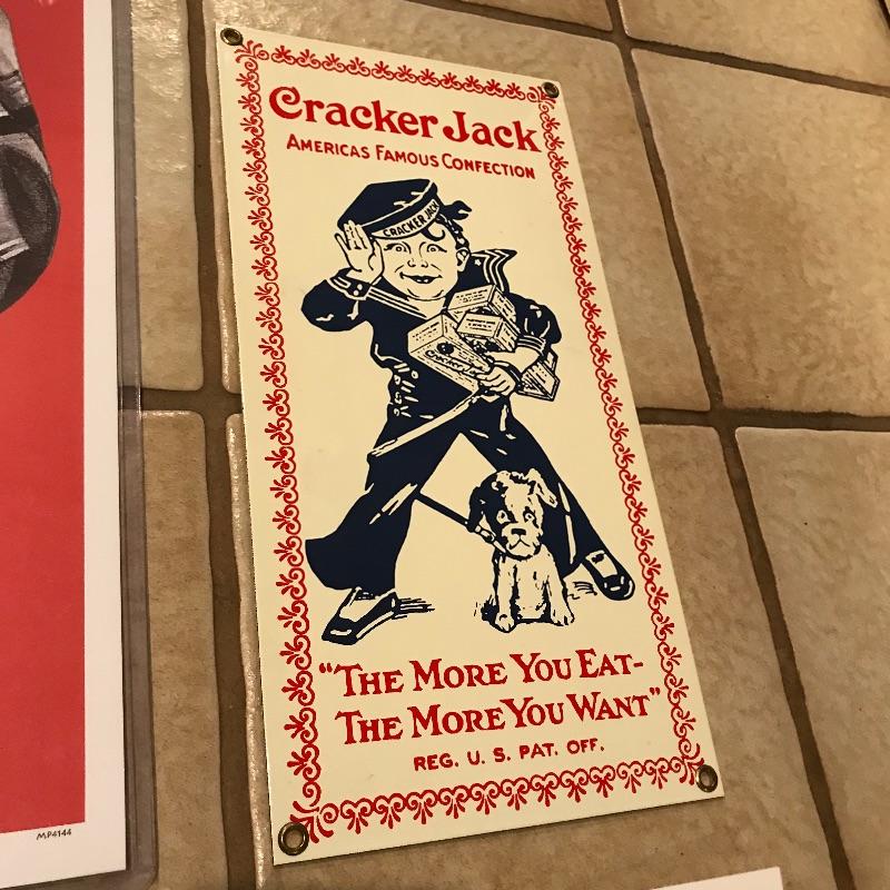 Lot includes five signs and two small metal refrigerator magnets. Alexander poster (magician and psychic from the 1920s ) is protected with plastic cover and measures 17.5' x 11.5", Can’t Get Enough Fluff is paper and other three signs are metal. Shipping available.