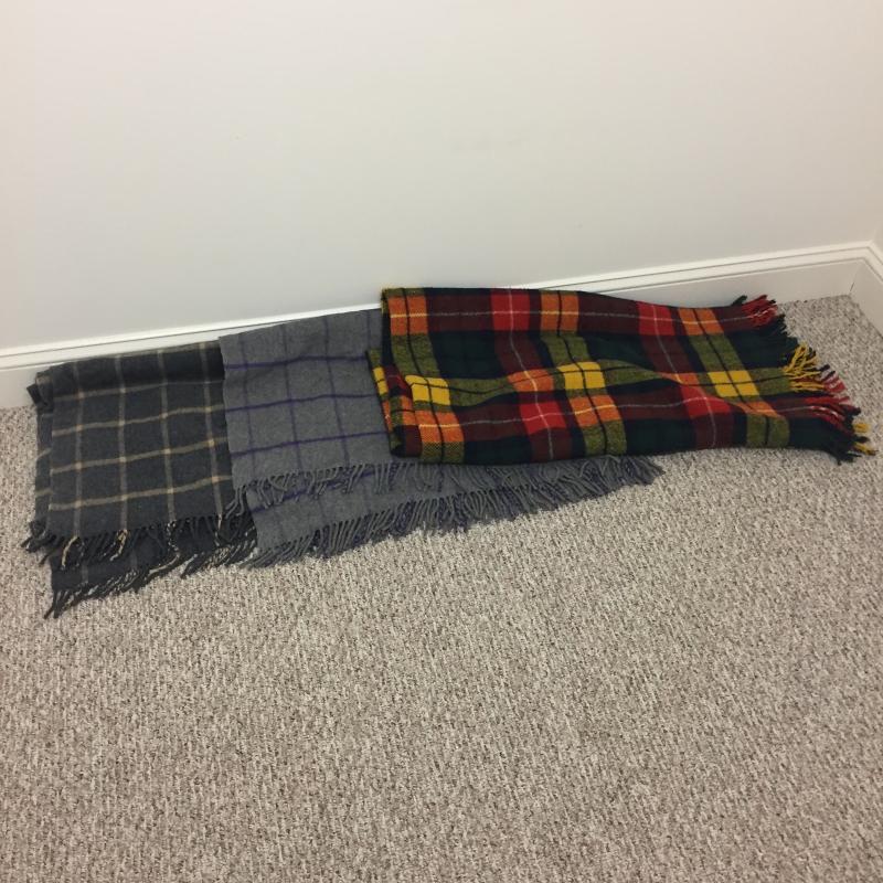 Keep warm this winter with these lovely five wool blankets. Superb Royal Scot tartan all wool blanket measures 56” x 68”. Dark and light grey Moon wool blanket are limited edition and from the British Isles. They measure 56” x 68”. Green wool blanket measures 48” x 70” and Off white blanket measures 88” x 104”. All are in excellent condition. Shipping Available.
