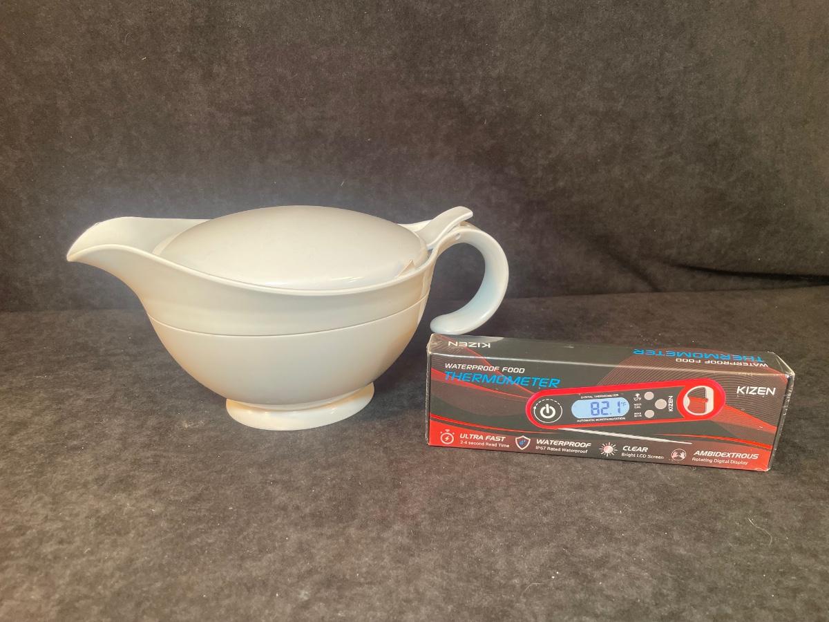 Lot 10. Thermal Gravy Boat and Food Thermometer