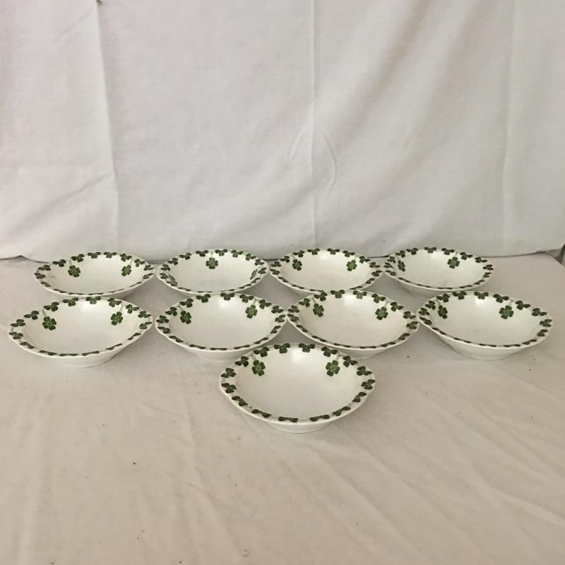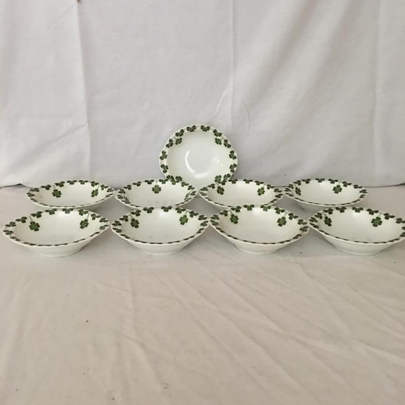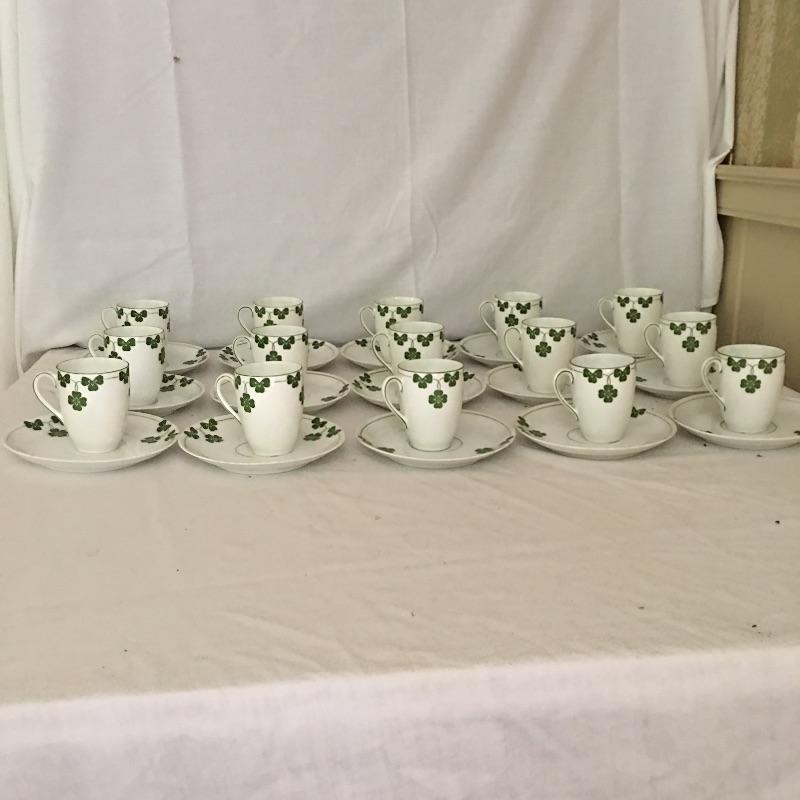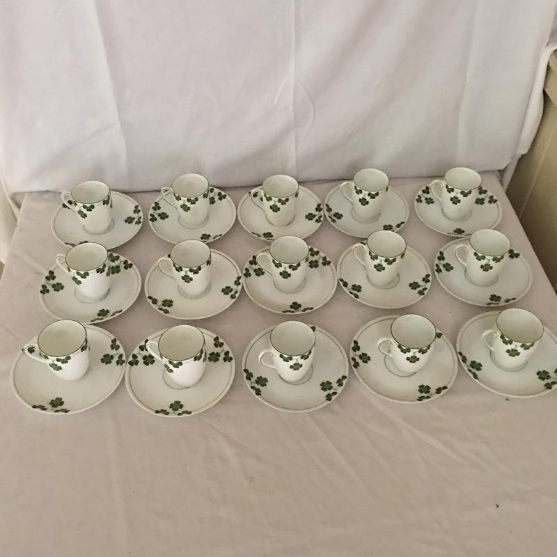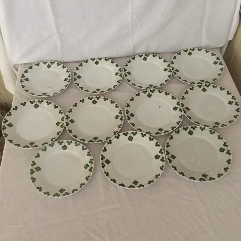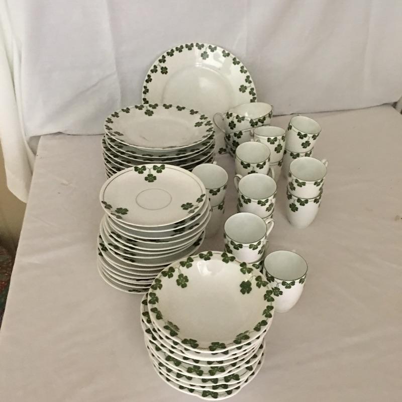 Thomas Bavaria fifty five piece China set decorated with three leaf clover motif. Bring some luck into your home with this fresh and decorative set of dishes. Largest plate measures 9.75”D.