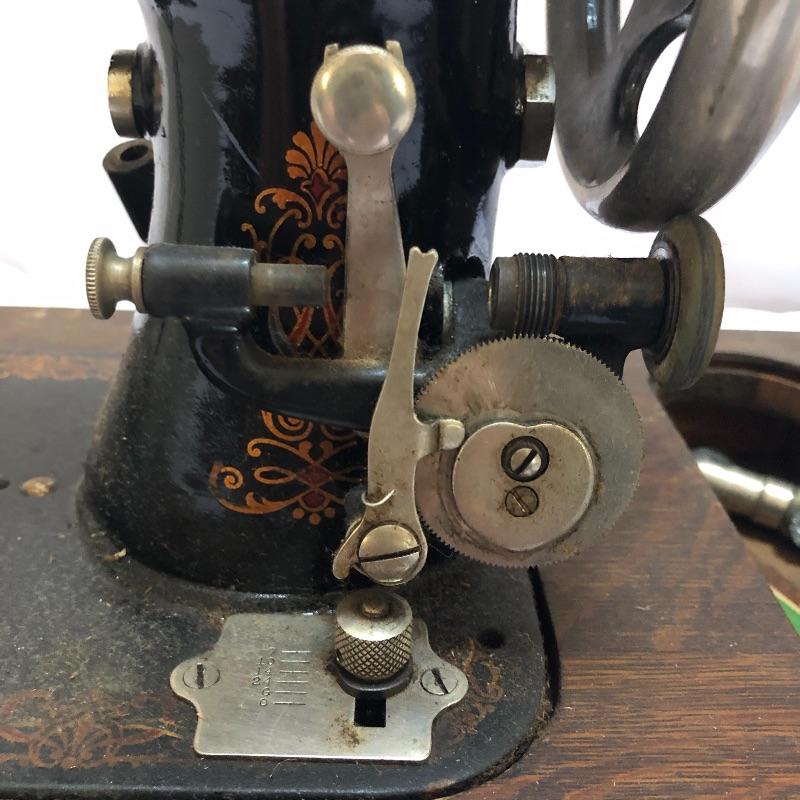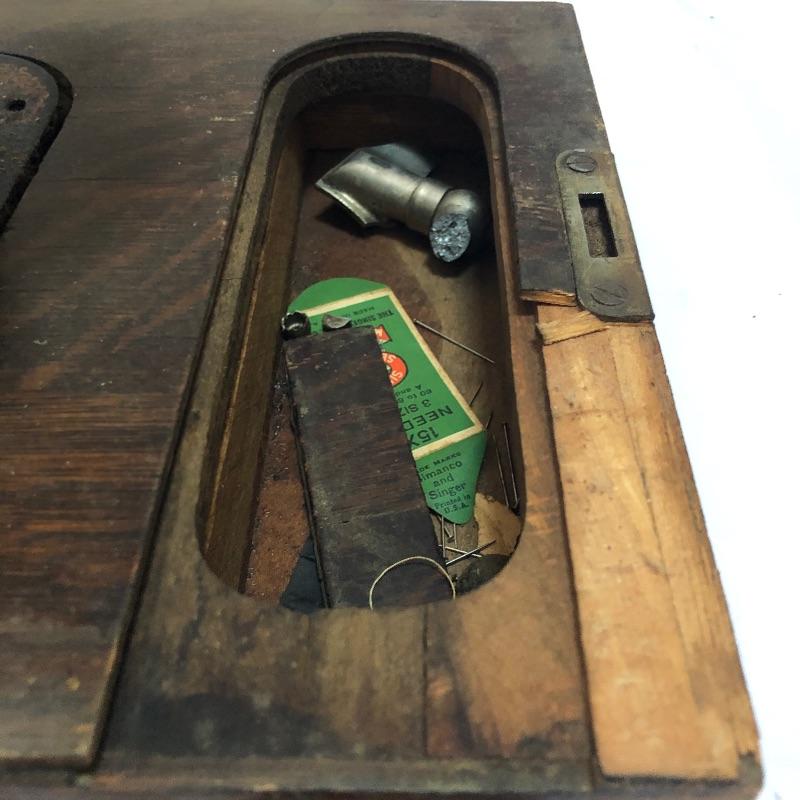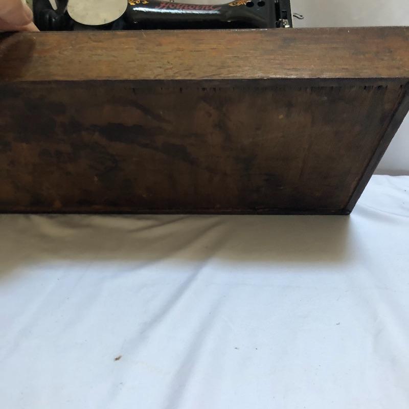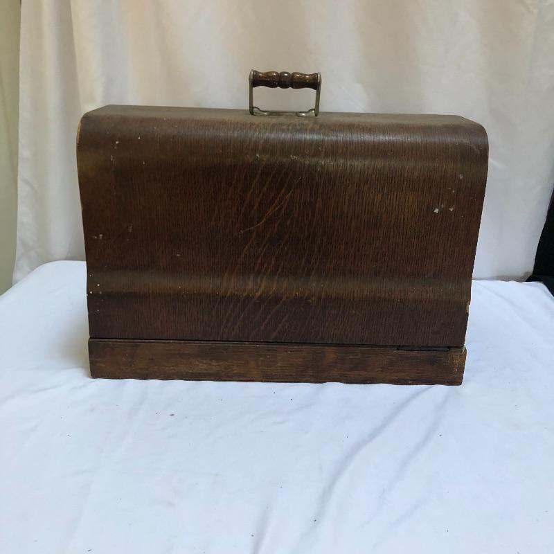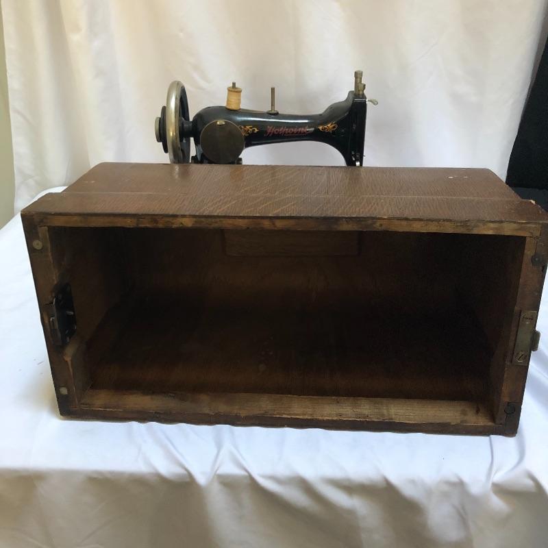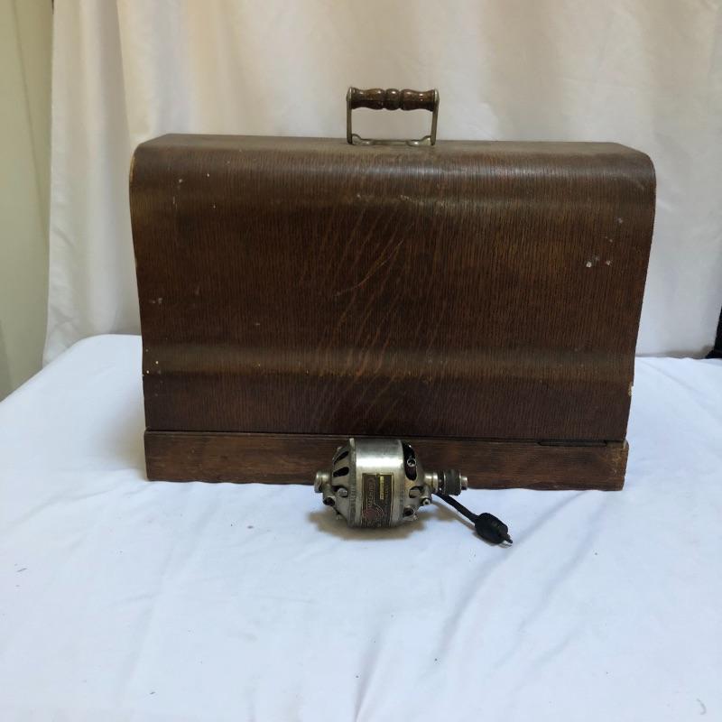 A great piece for your craft room is this beautiful Hotpoint portable sewing machine. Machine turns freely and has wooden case. Motor was not tested and has a broken case, see pictures. Case measures 9” x 19” x 13”.