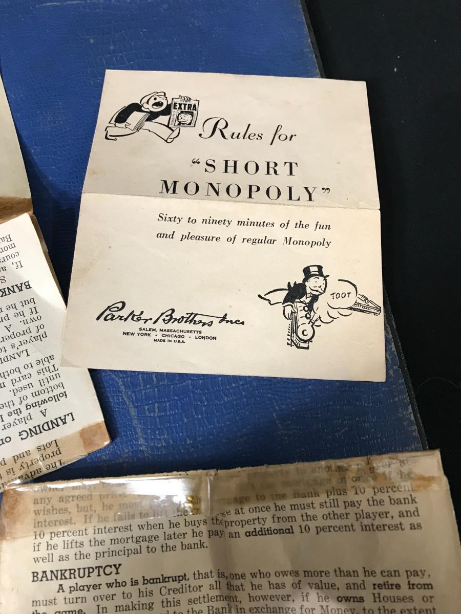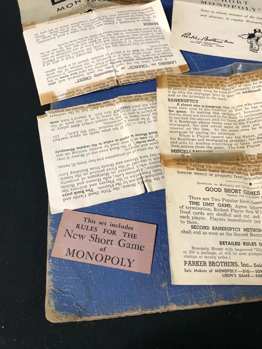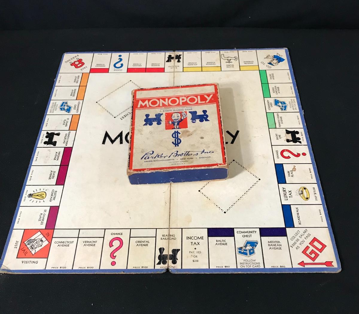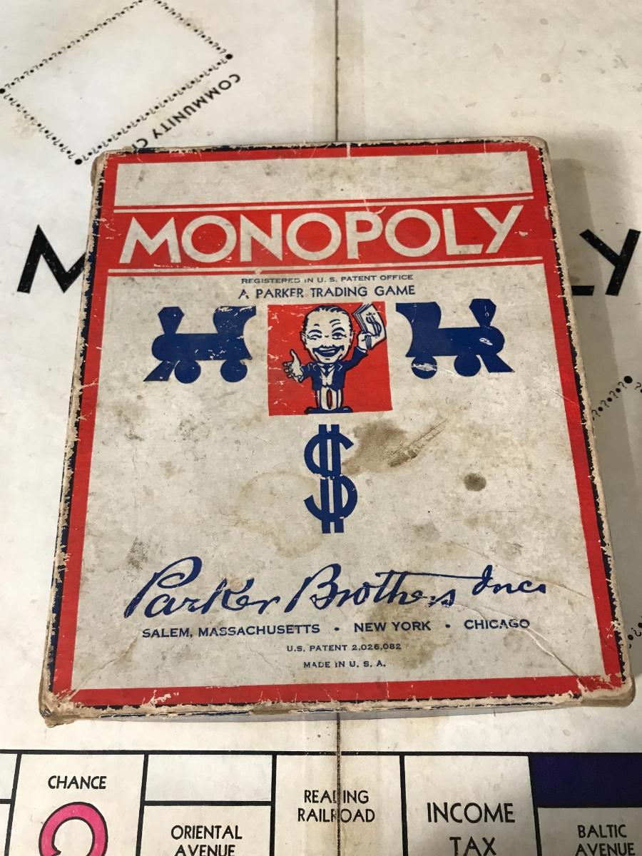Vintage Monopoly Board Game with Wooden Game Pieces, Houses and Hotels. Believed to be from the 1940s. Uncertain if all pieces are present, but at least a majority of the game's contents are here and in decent condition. Please see all pictures as they are the best representation of the items. The pictures show condition, measurements if taken, and what is included in the lot. Due to the large amount that we photograph and the time frame, we are not always able to take measurements. All items unless noted, are pre-owned and have been used. Please bring packing materials for your items. If you purchased furniture, you must bring help. We do not allow one person to carry large furniture out on their own. Bring help, tools and a truck for your personal safety. Company policy. Thank you.