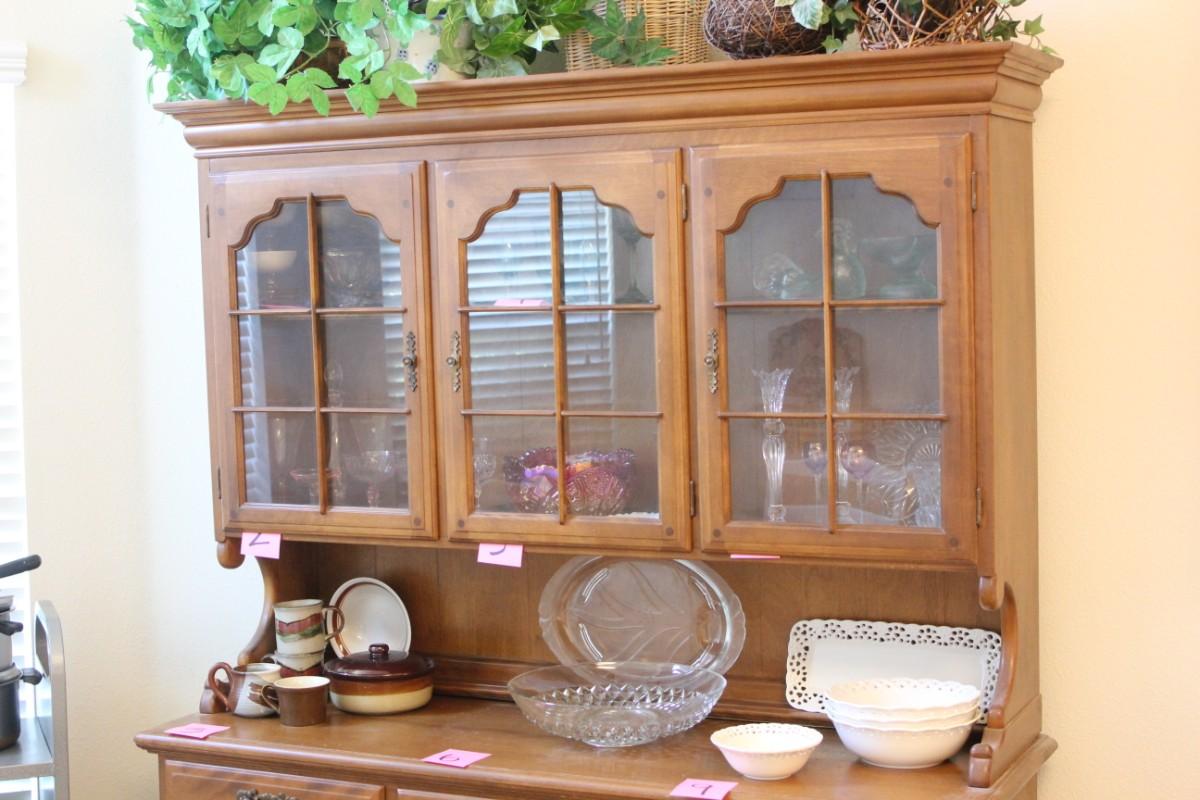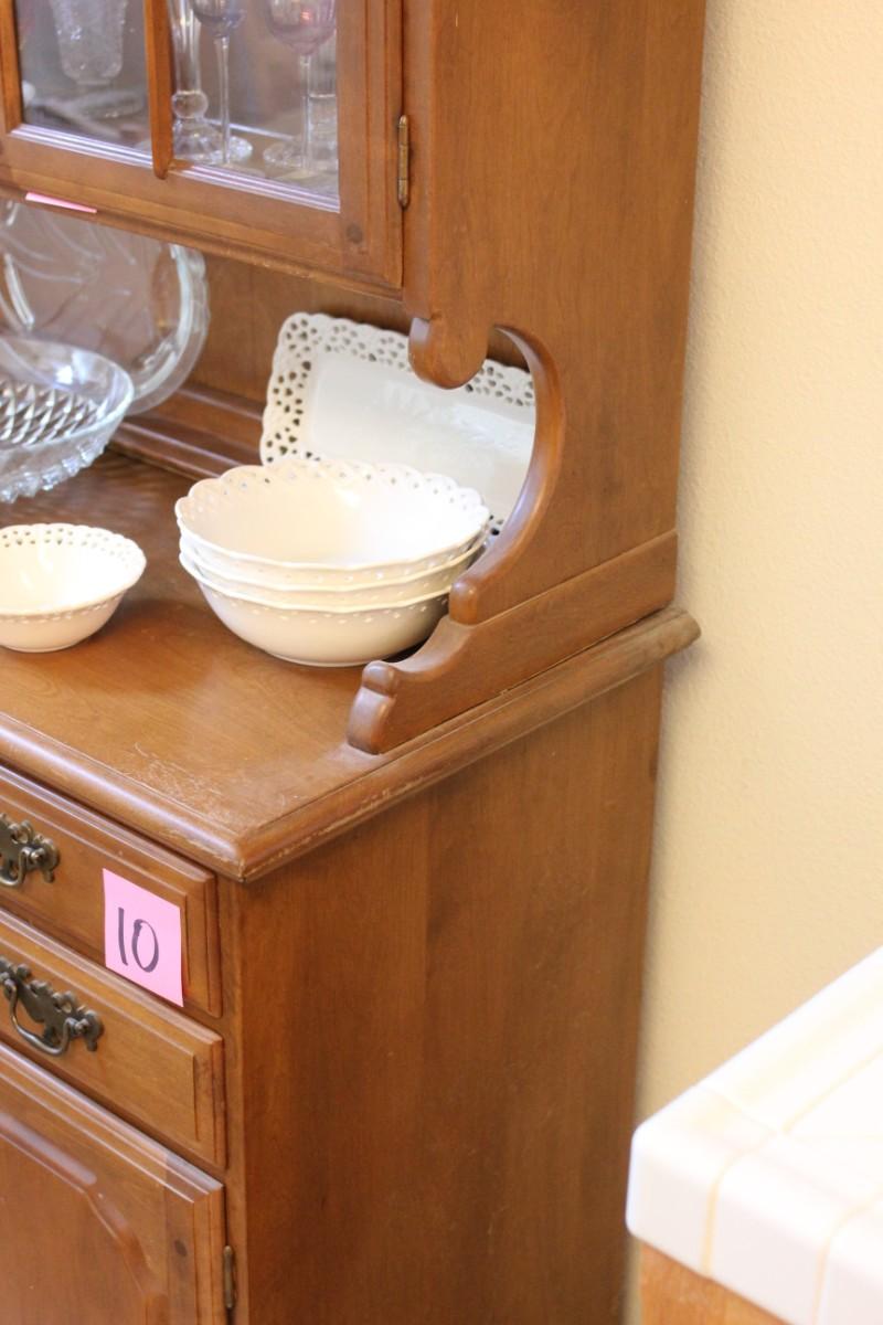 Lot 10 Vintage Temple-Stuart Wood Hutch w/ Display Cabinet 76"x54"x19"