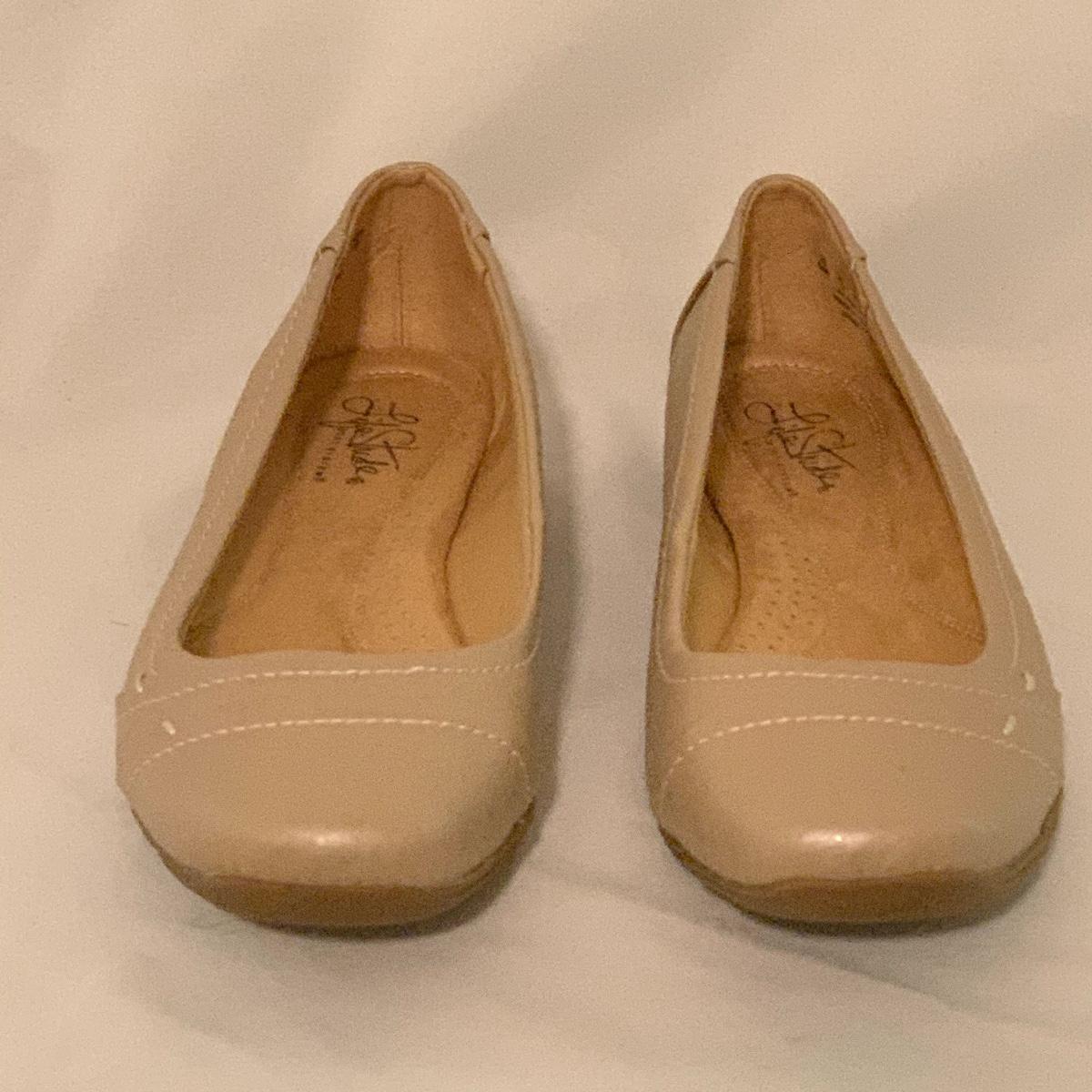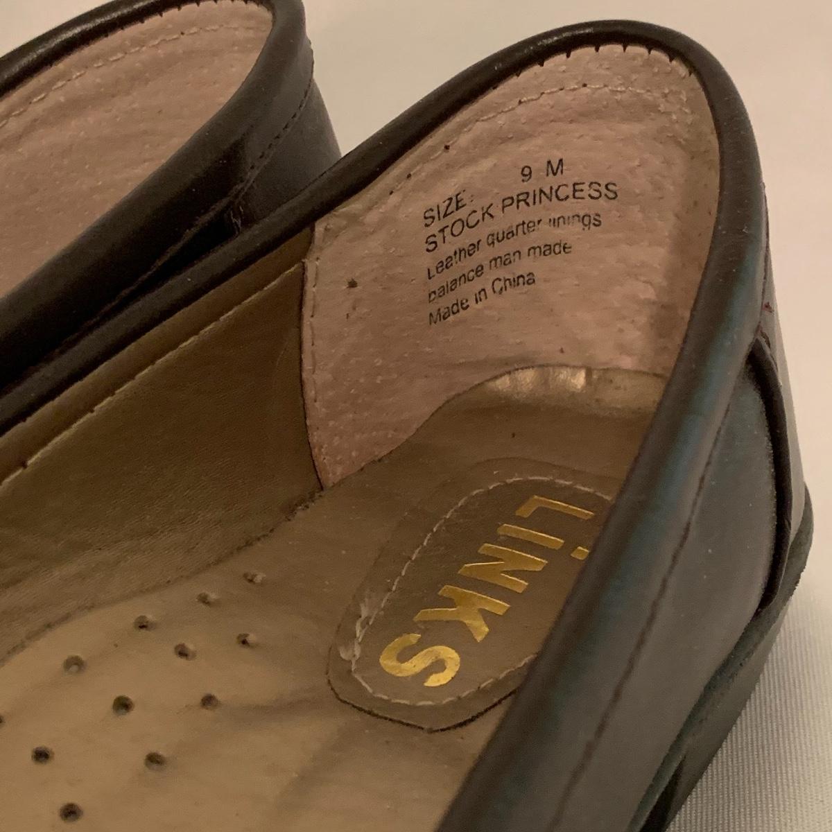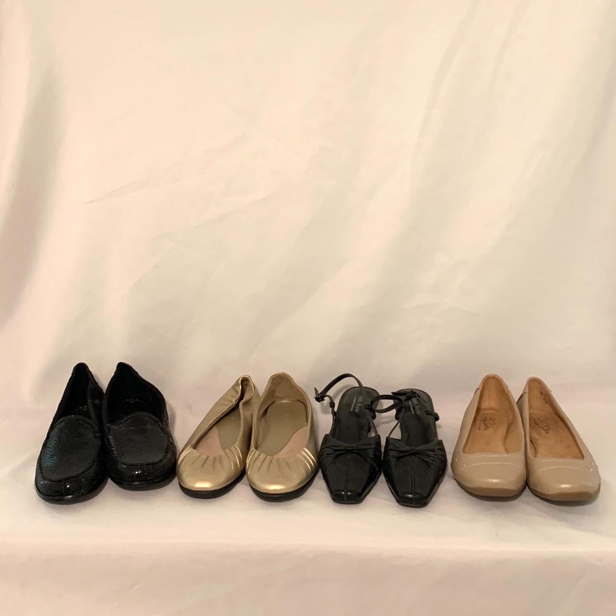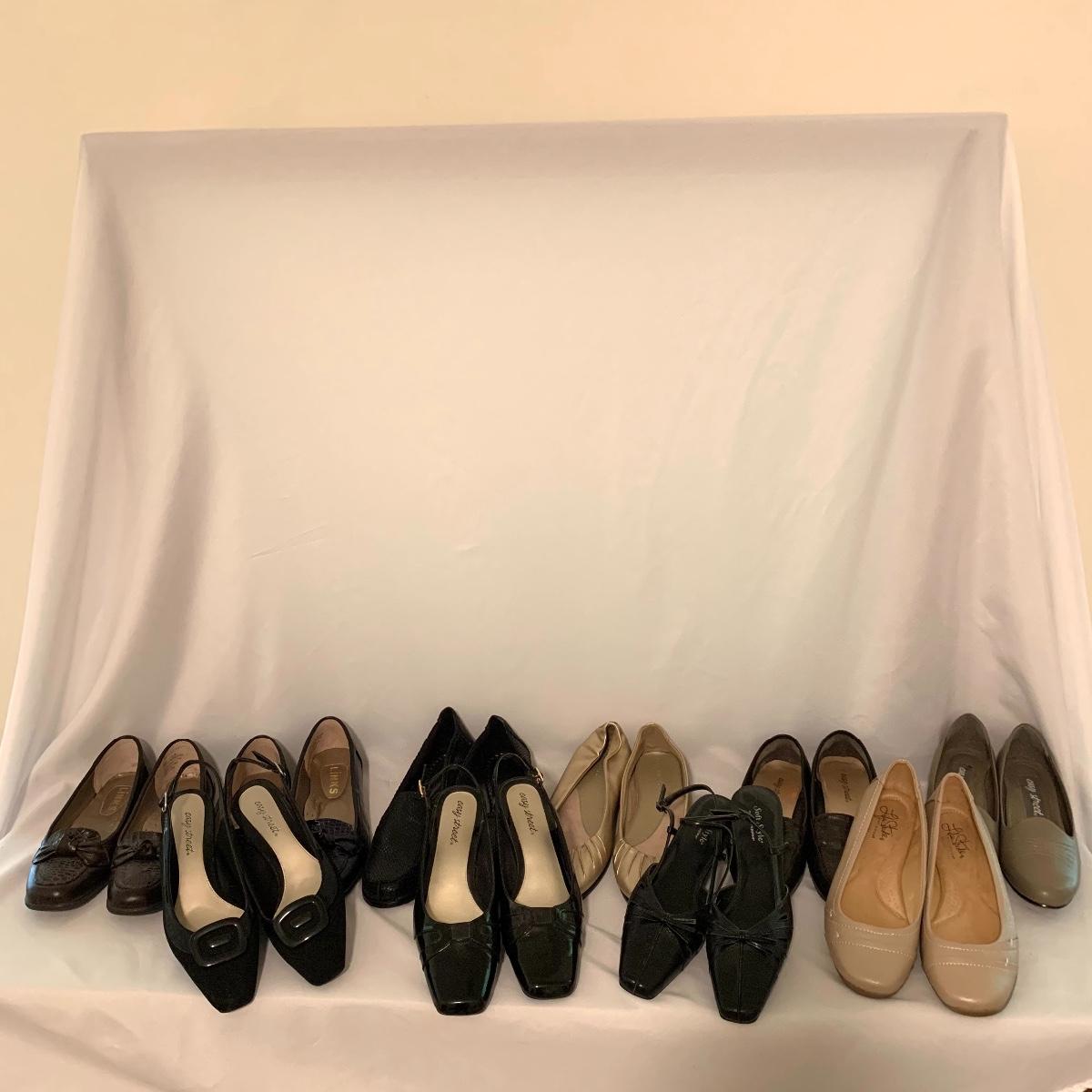 In this lot you will find ten nice pairs of size 9 women’s shoes. Most are flats, but a few have low (1”-2”) high heels. There are some black shoes, some brown, some tan, and one gold pair. The following brands comprise this collection: Easy Street, Life Stride, Links, Soft Style by Hush Puppies, and Trotters. All are in great condition with a few appearing to never have been or were rarely worn. Shipping available.
