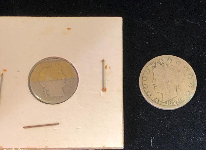 Lot 100 - 1890 V Nickel and 1904 Barber Dime