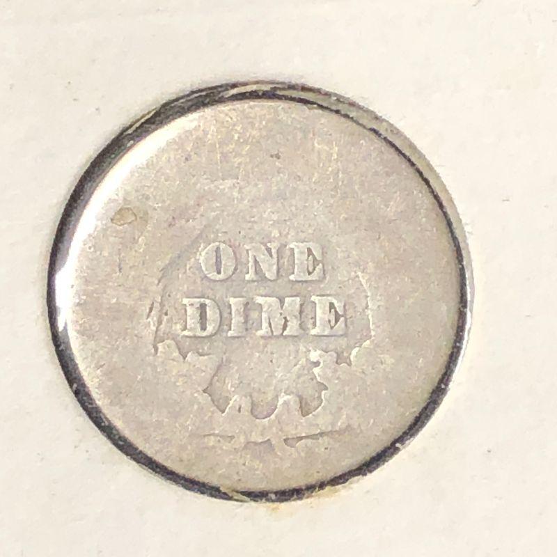 There is something like a tape residue on the plastic over the Barber Dime that is causing the yellow tint. Please see the pictures for details and condition.