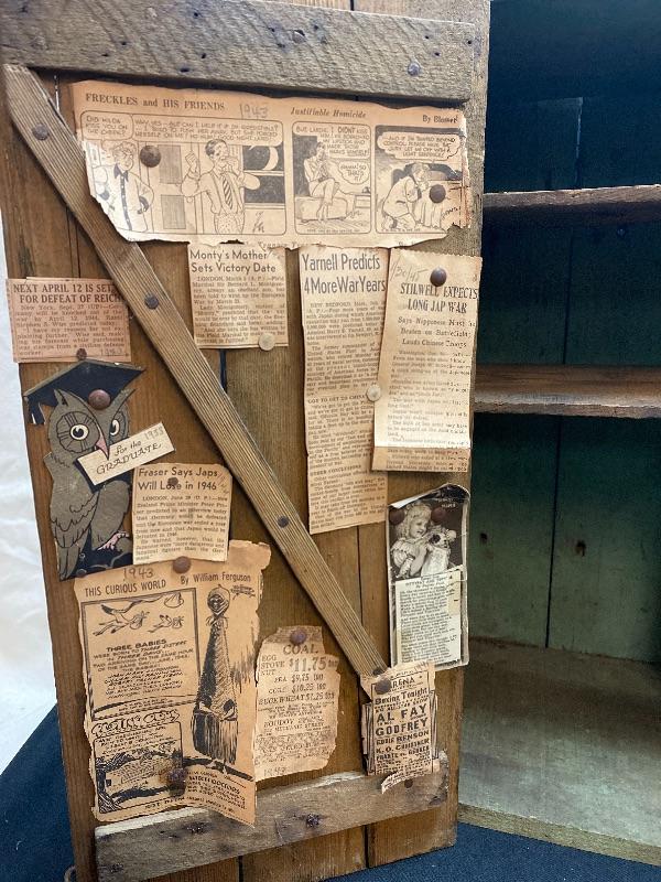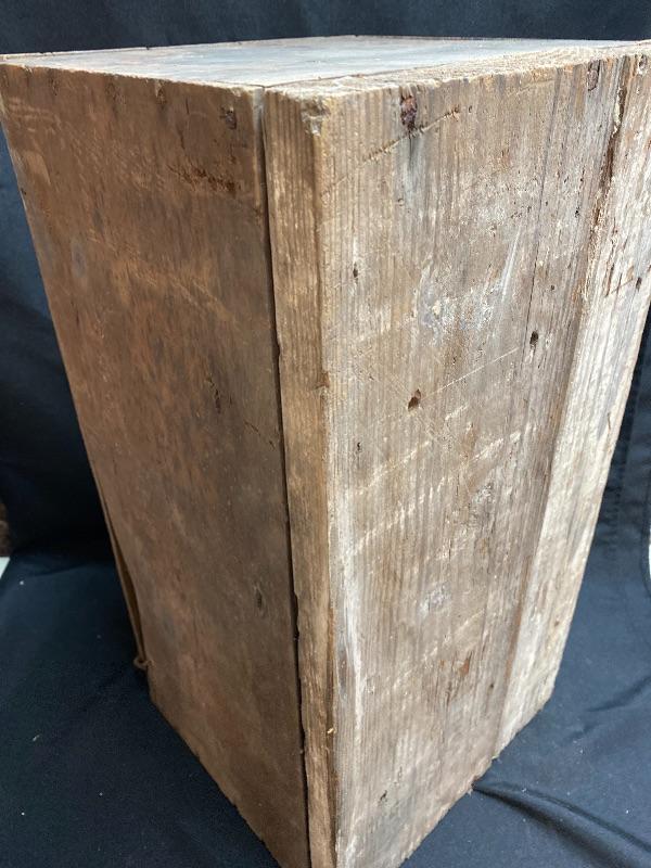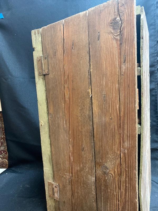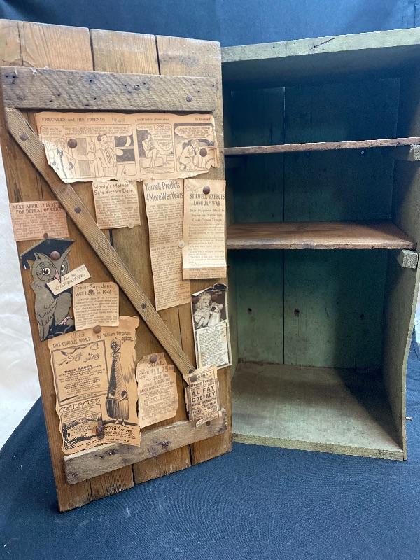 This antique Artichoke box with cool chippy green paint was used as a pantry wall box to store tins and smalls! Very unique, primitive, and versatile! Please see all pictures for condition of the items listed and what is included in the lot. Pictures will also show any measurements if taken and is the best representation of the items. Thank you for looking and have fun bidding! We appreciate Treasure Hunters!