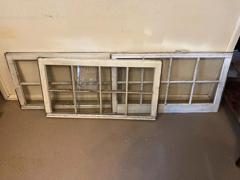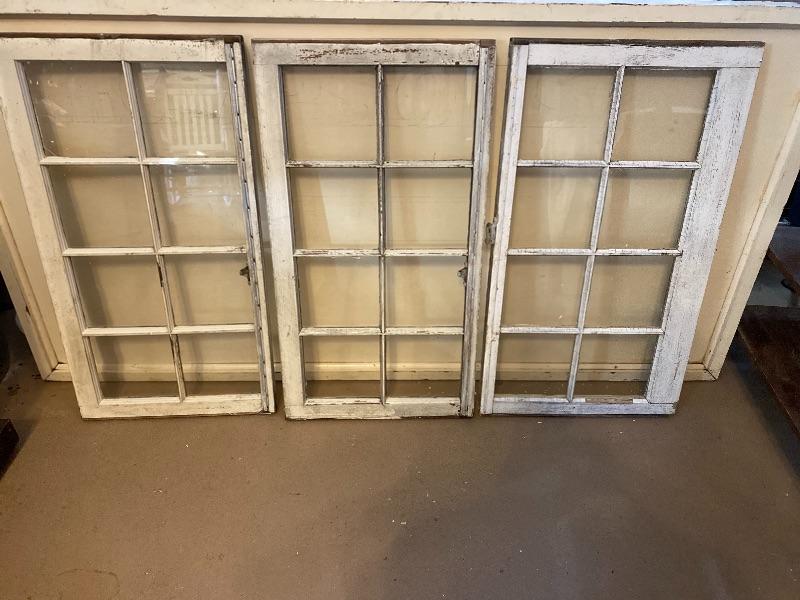 Lot# 100 3 all Wood 8 Pane Windows Repurpose Craft Shabby Chic chalk paint Shelf