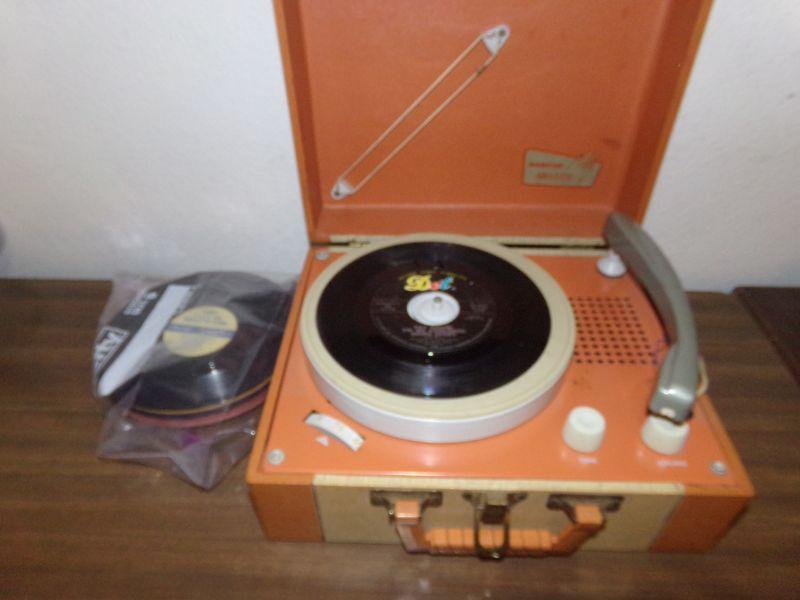 CHILD'S RECORD PLAYER WITH 45'S RECORDS