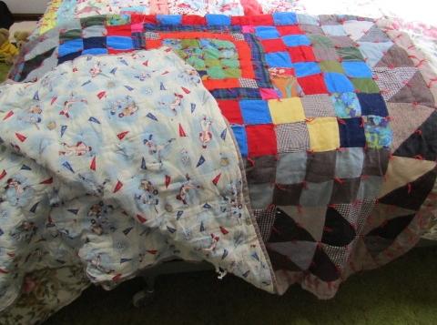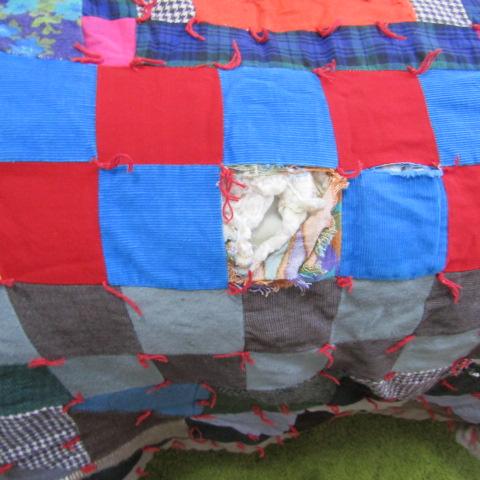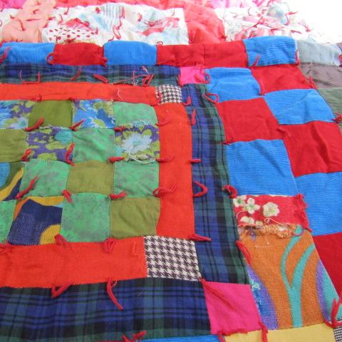 HAND STITCHED VINTAGE QUILT IN FAIR TO GOOD CONDITION