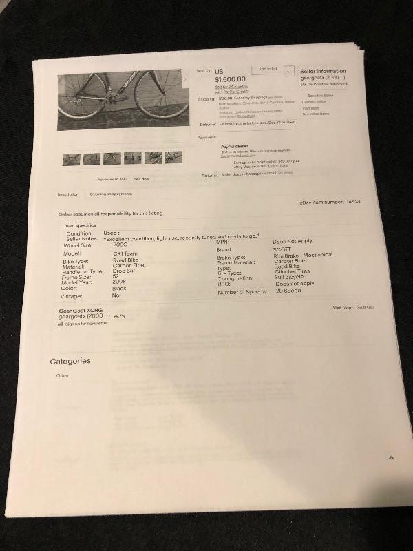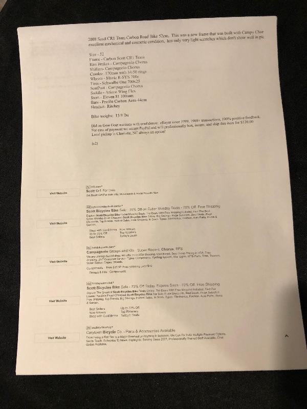 Lot 100 - Shimano Octalink - Shimano Crank - SCOTT Bike - Carbon Fiber. Original Cost was $1,500.00! Flex Fit Small/Medium
