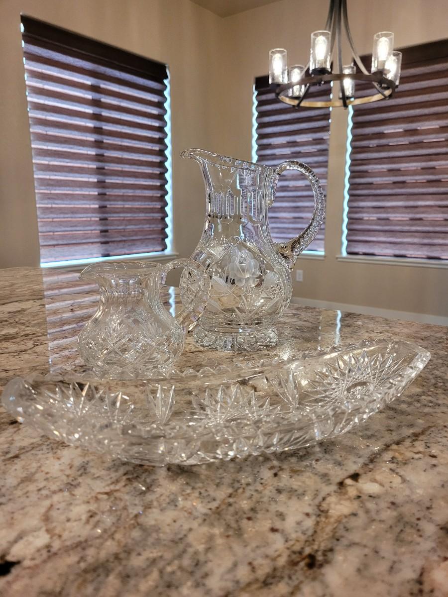 Lot 100: Crystal Pitcher, Small Pitcher and Dish
