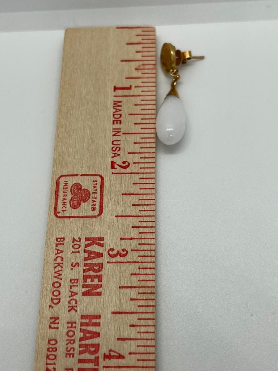 Vintage Gumps 14k White Jade Good Luck teardrop pierced earrings