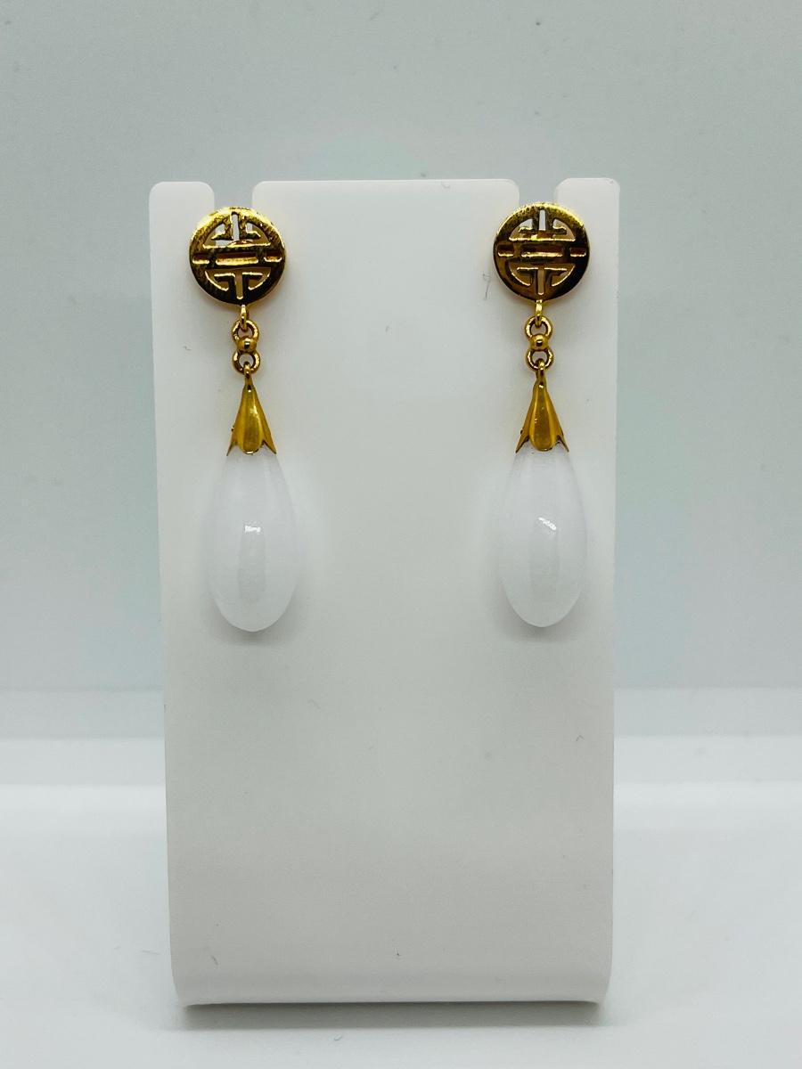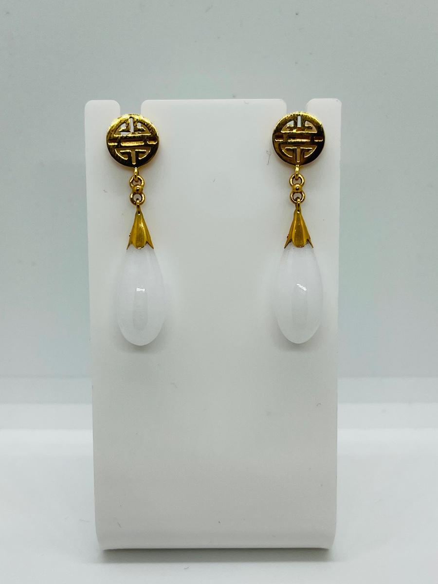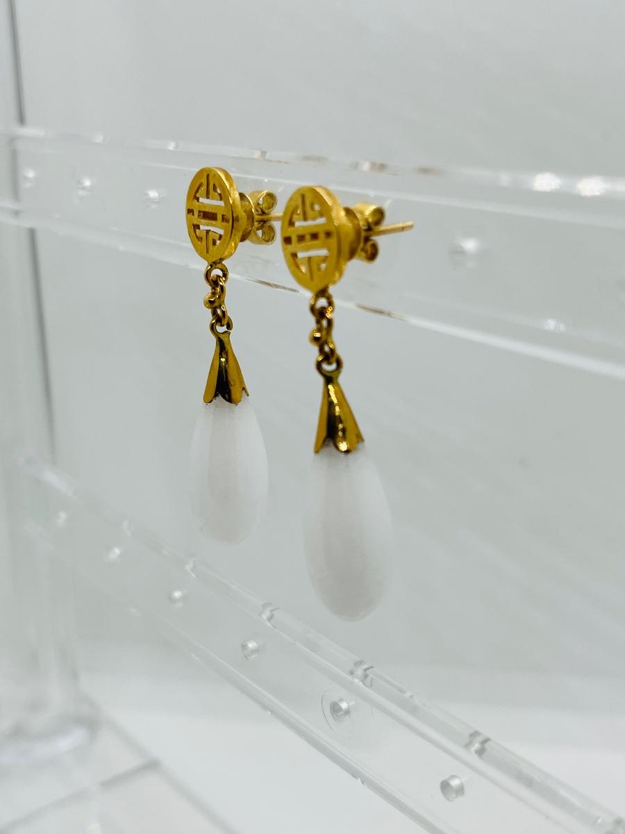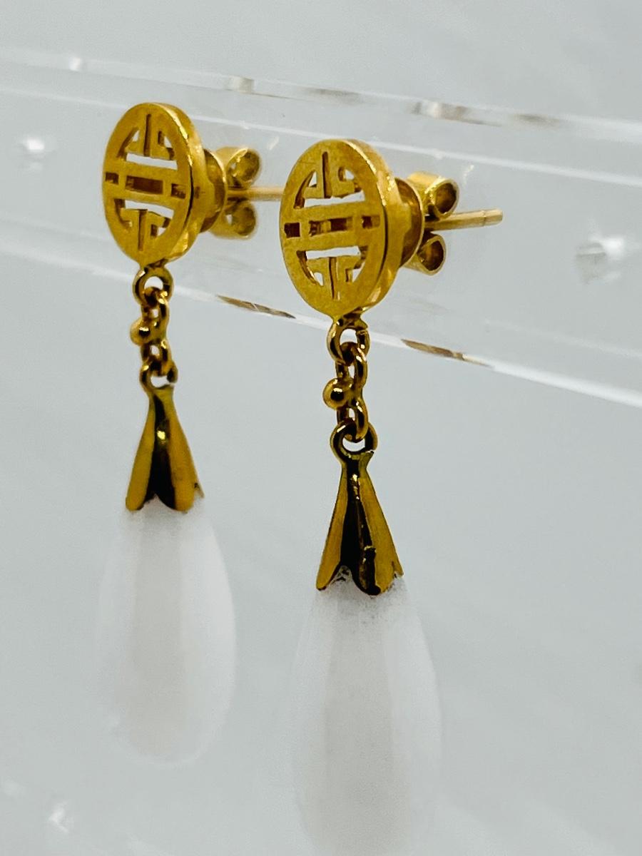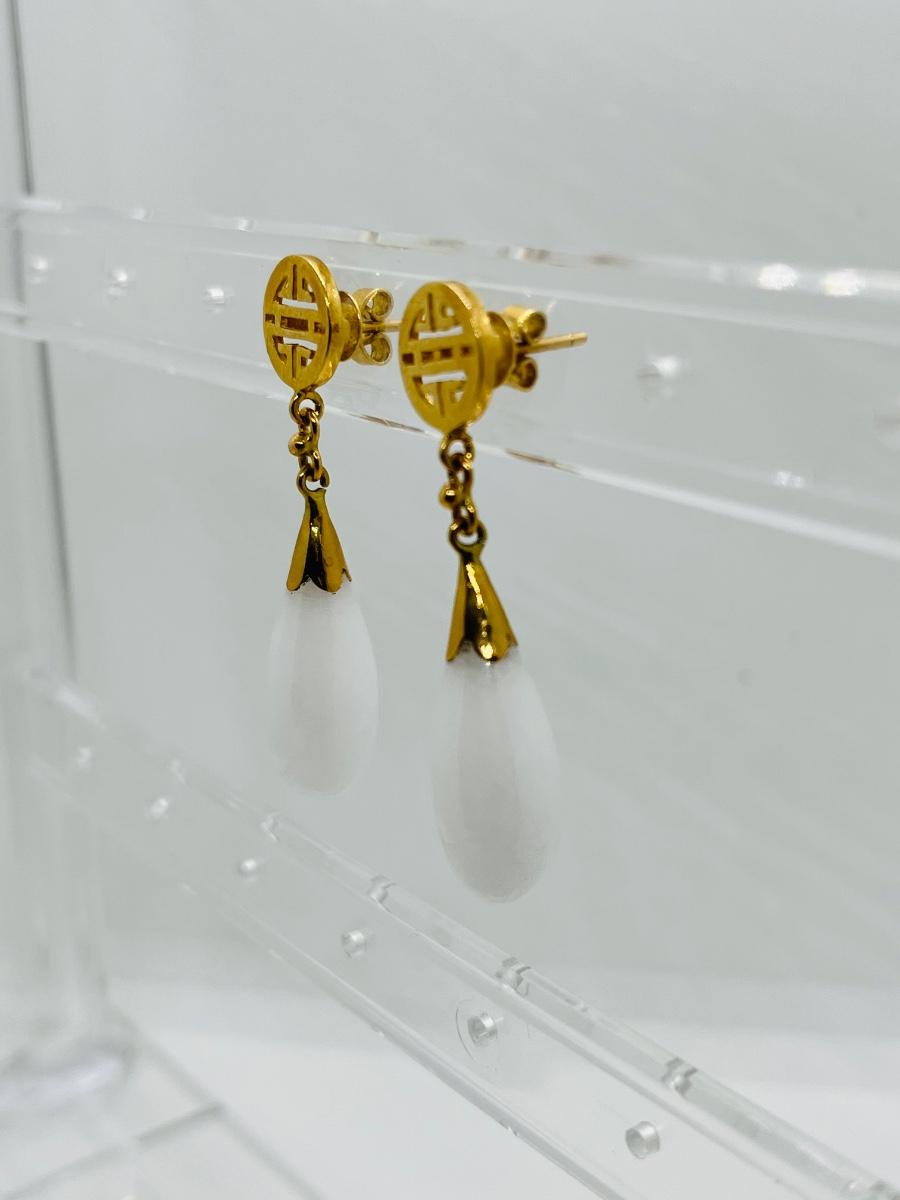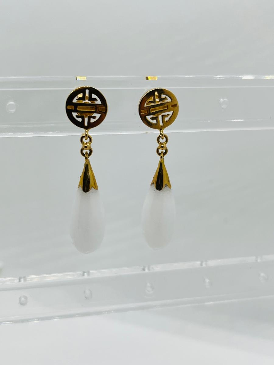 Lot 100: Gumps 14k White Jade Good Luck teardrop pierced earrings