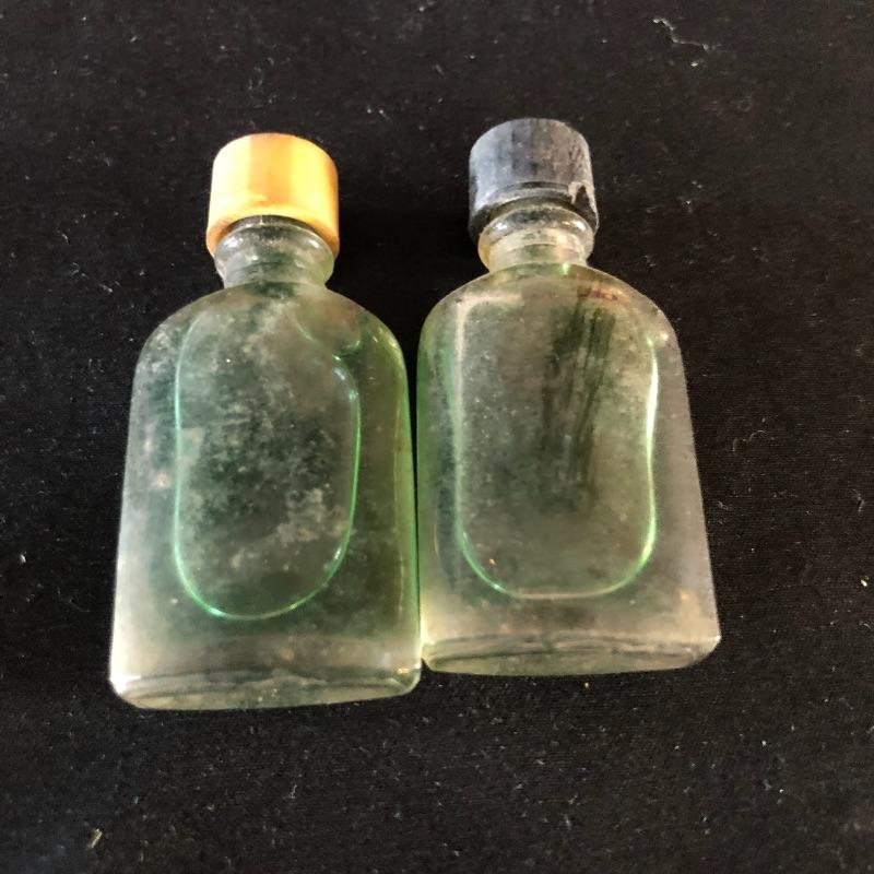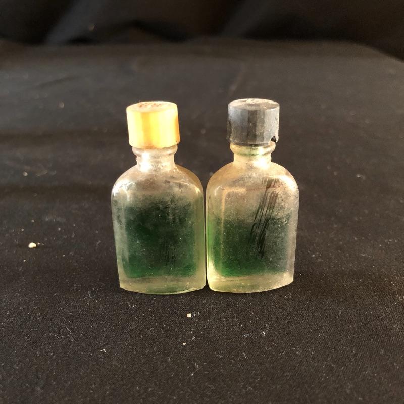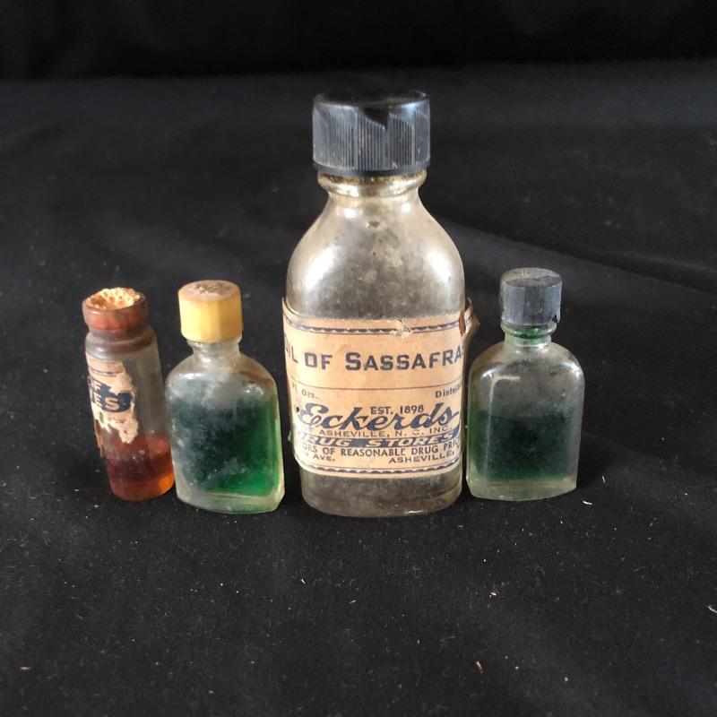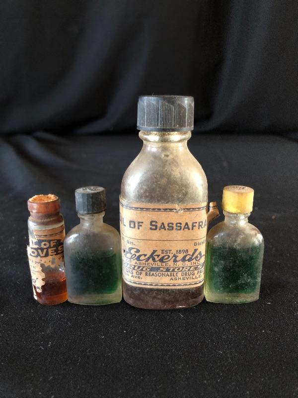 Go back in time with this collection of bottles. Lot includes bottle with label from Eckerds in Asheville NC , two small bottles and one small bottle. These contain unknown liquids and are for collectible purposes only and shouldn't be digested. Largest bottle measures 1.5” x 3.5”. Local Pick up only.