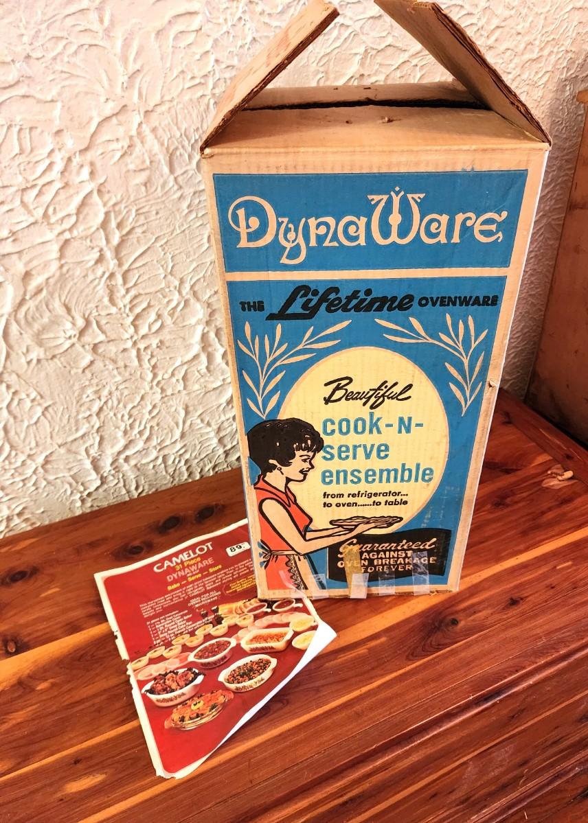 Lot #100 Attic find! Vintage 31 Piece Camelot Dynaware Bake Serve Store Set in Box