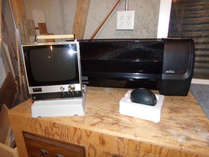 ELECTRIC HEATER, PORTABLE BOX TV AND AN EMU EGG!