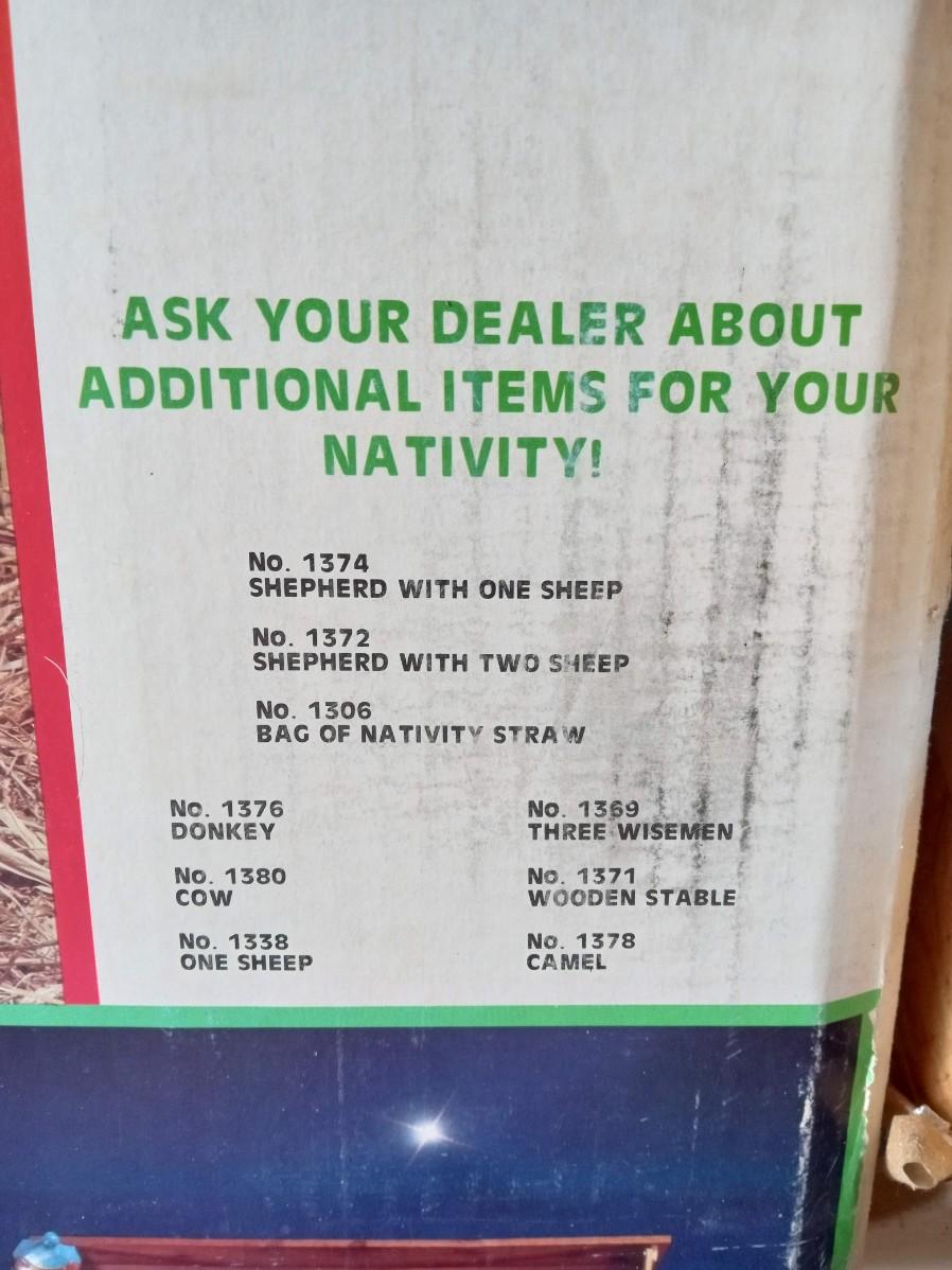 THE STABLE MEASURES 55 X 35 X 24 THE WISE MAN IS THE TALLEST FIGURE AT 27"