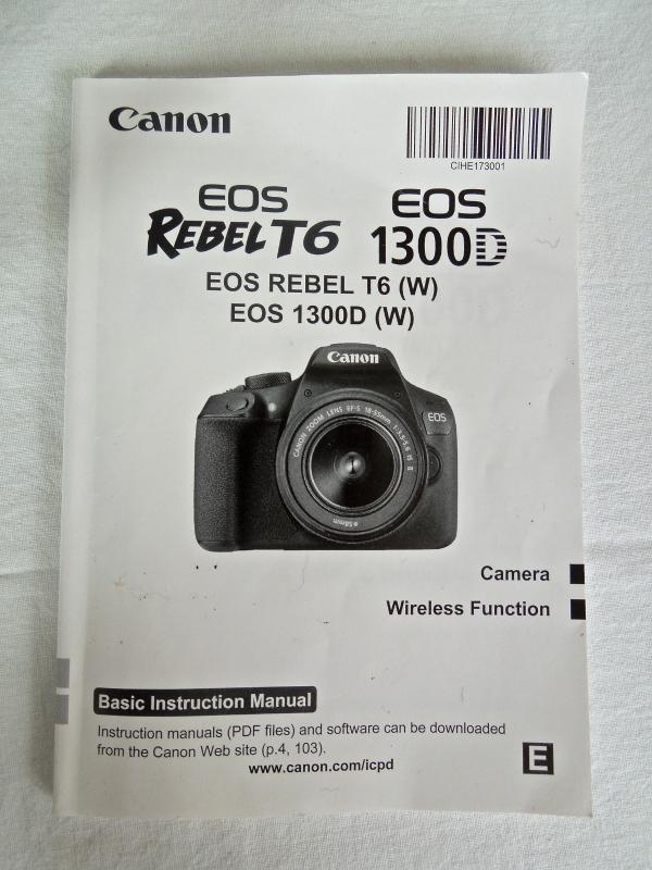 - Canon EOS Rebel T6 for Dummies book and Canon instruction manual