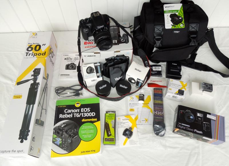 This opened, but barely used Canon Rebel EOS T6 Kit includes: