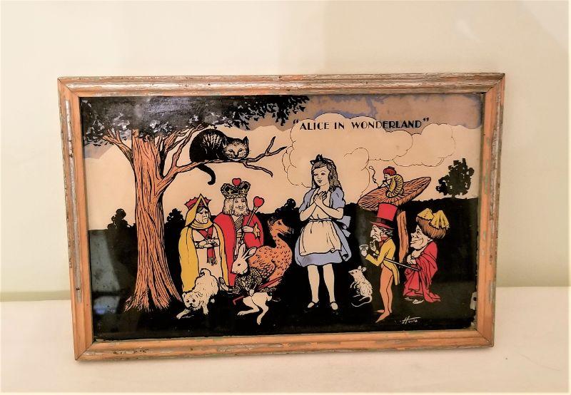 Lot #100  Charming Reverse Painted on Glass Alice in Wonderland scene - vintage