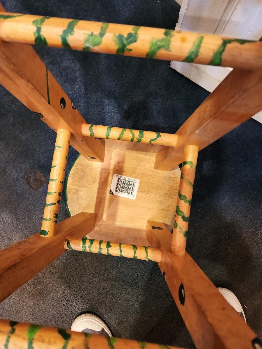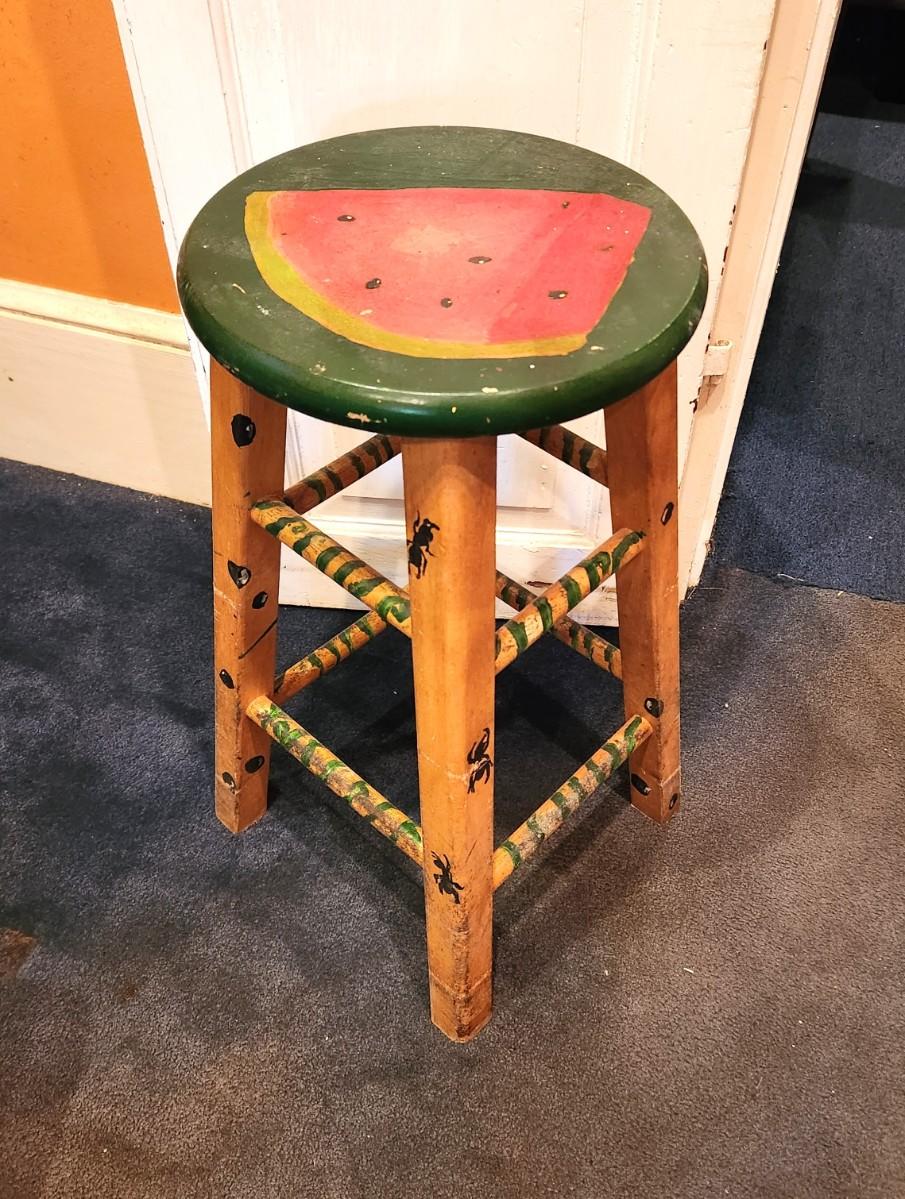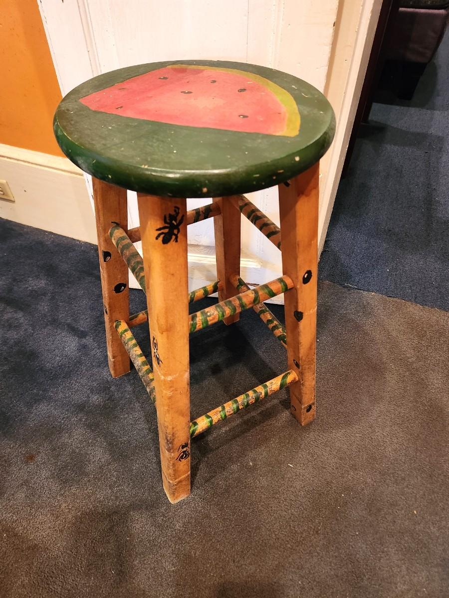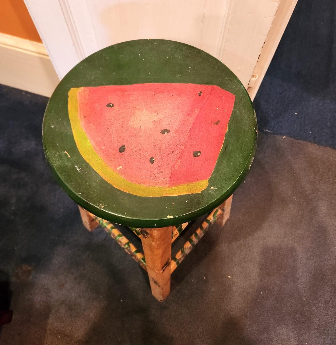 Contemporary painted folk art style stool - 12" across, 2 feet tall. Solid wood - needs a good clean.