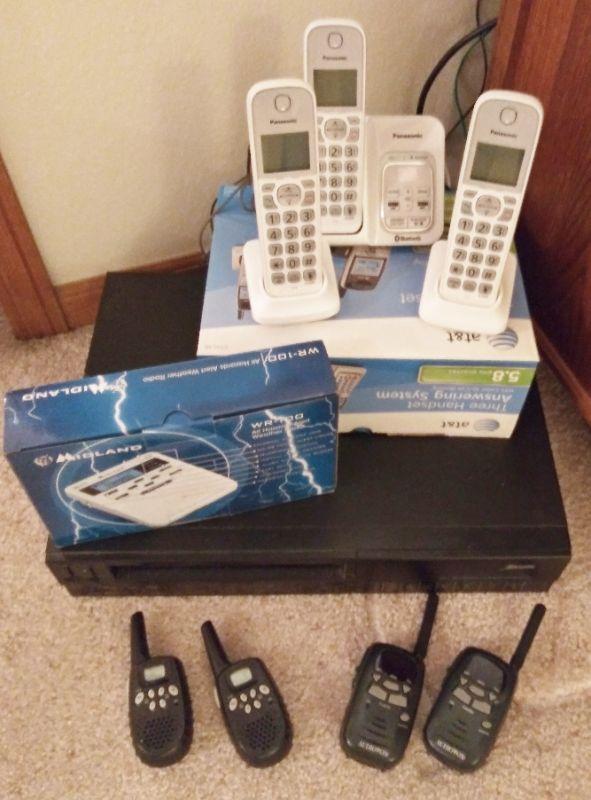 2 SETS OF WALKIE TALKIES, VHS PLAYER AND MORE