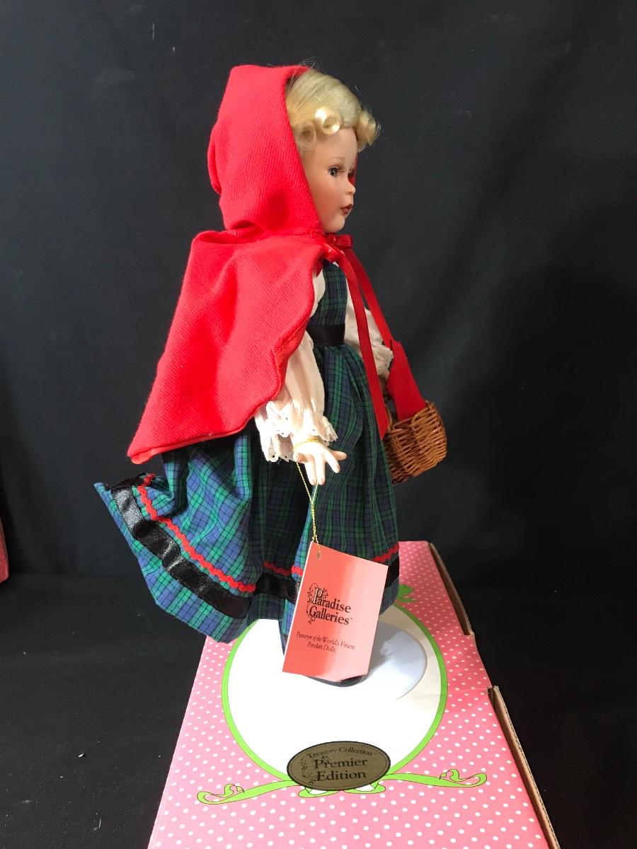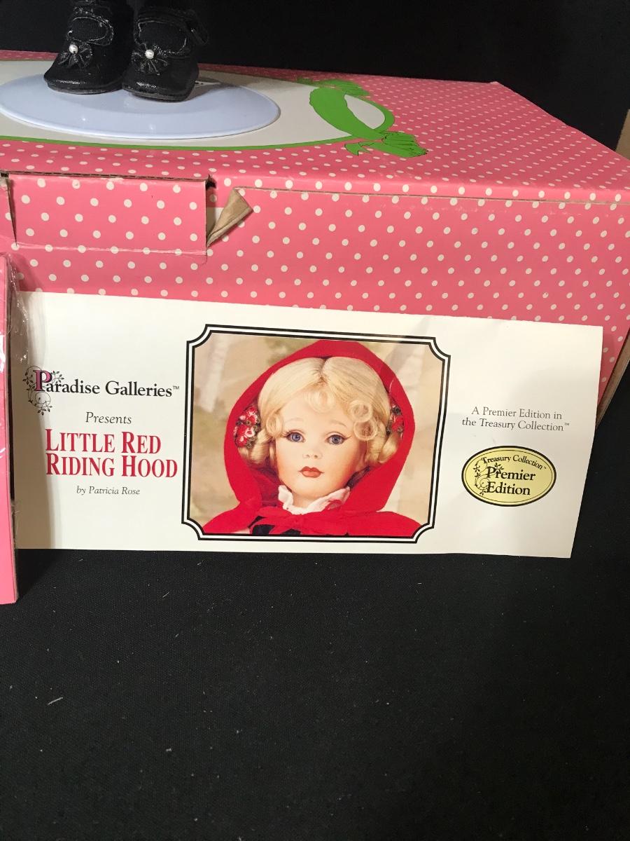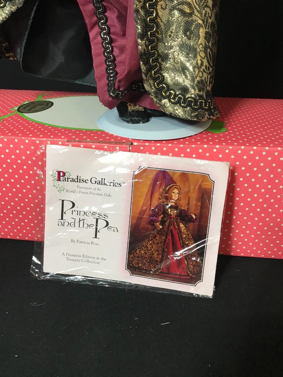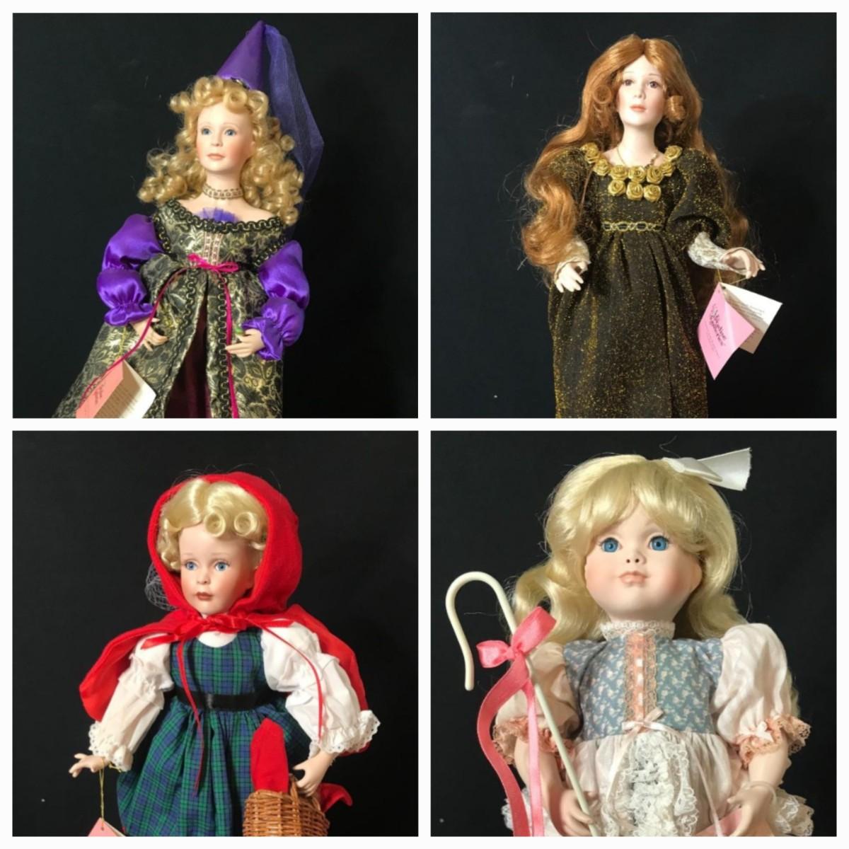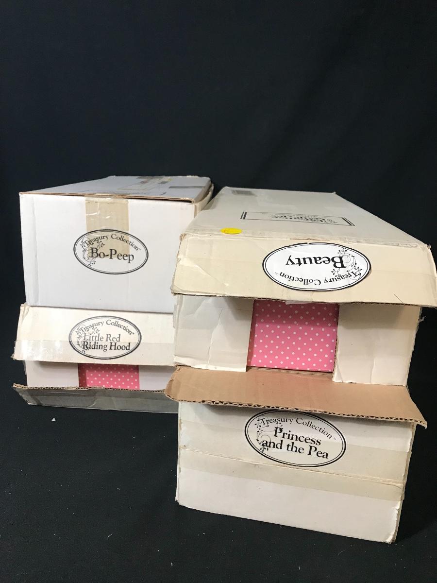 Paradise Galleries Treasury Collection Fairytale Dolls - Beauty, Bo-Peep, Little Red Riding Hood & Princess & The Pea. Please see all pictures as they are the best representation of the items. The pictures show condition, measurements if taken, and what is included in the lot. Due to the large amount that we photograph and the time frame, we are not always able to take measurements. All items unless noted, are pre-owned and have been used. Please bring packing materials for your items. If you purchased furniture, you must bring help. We do not allow one person to carry large furniture out on their own. Bring help, tools and a truck for your personal safety. Company policy. Thank you.
