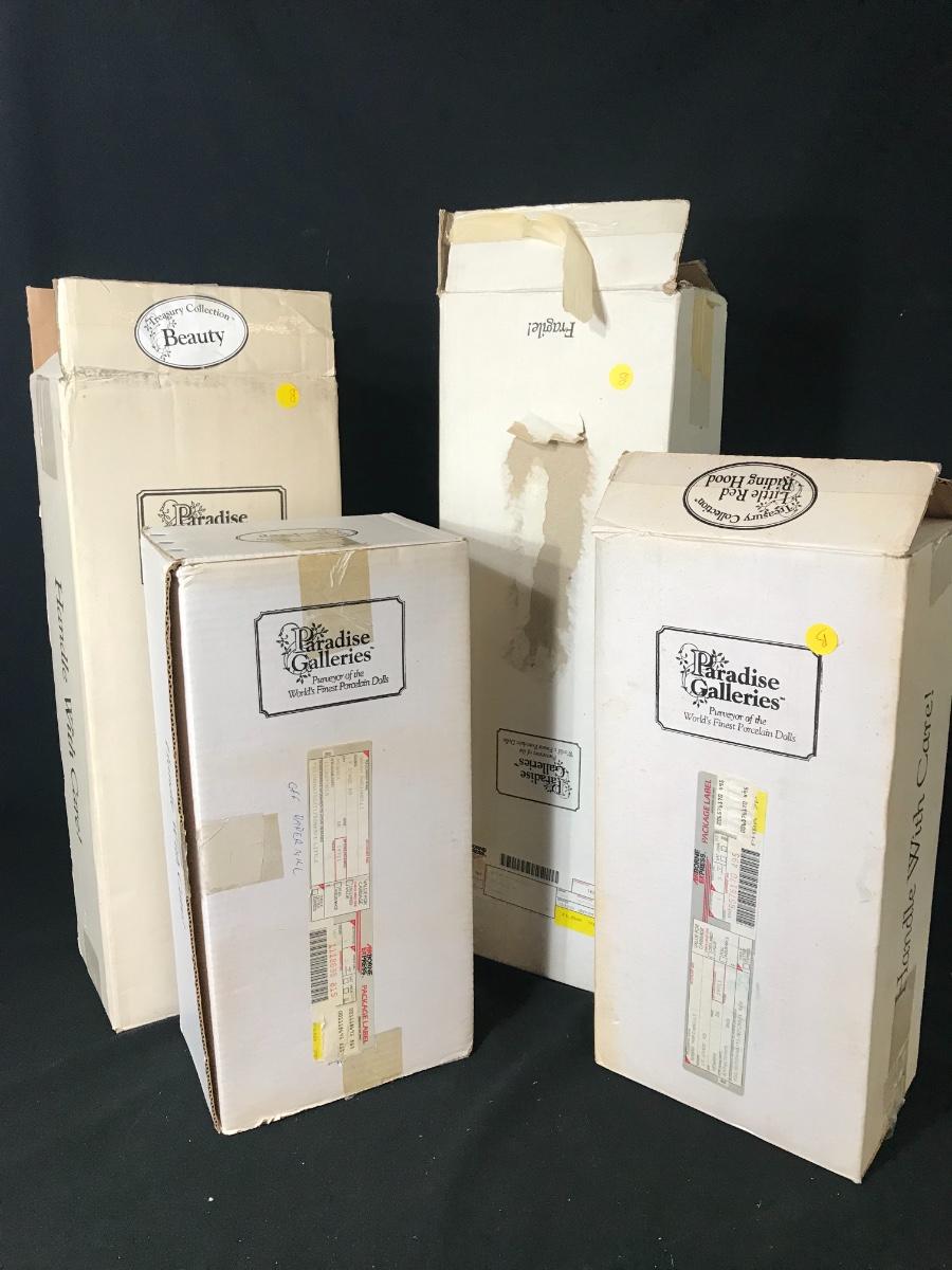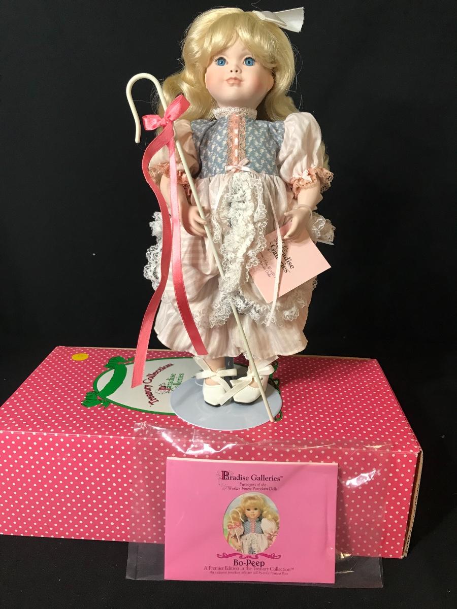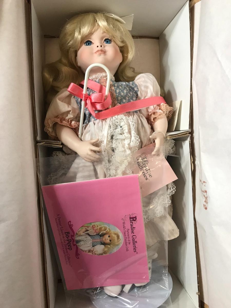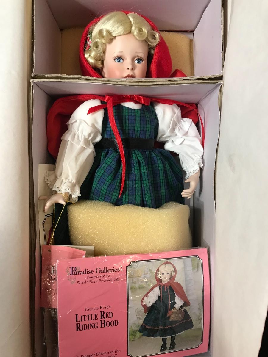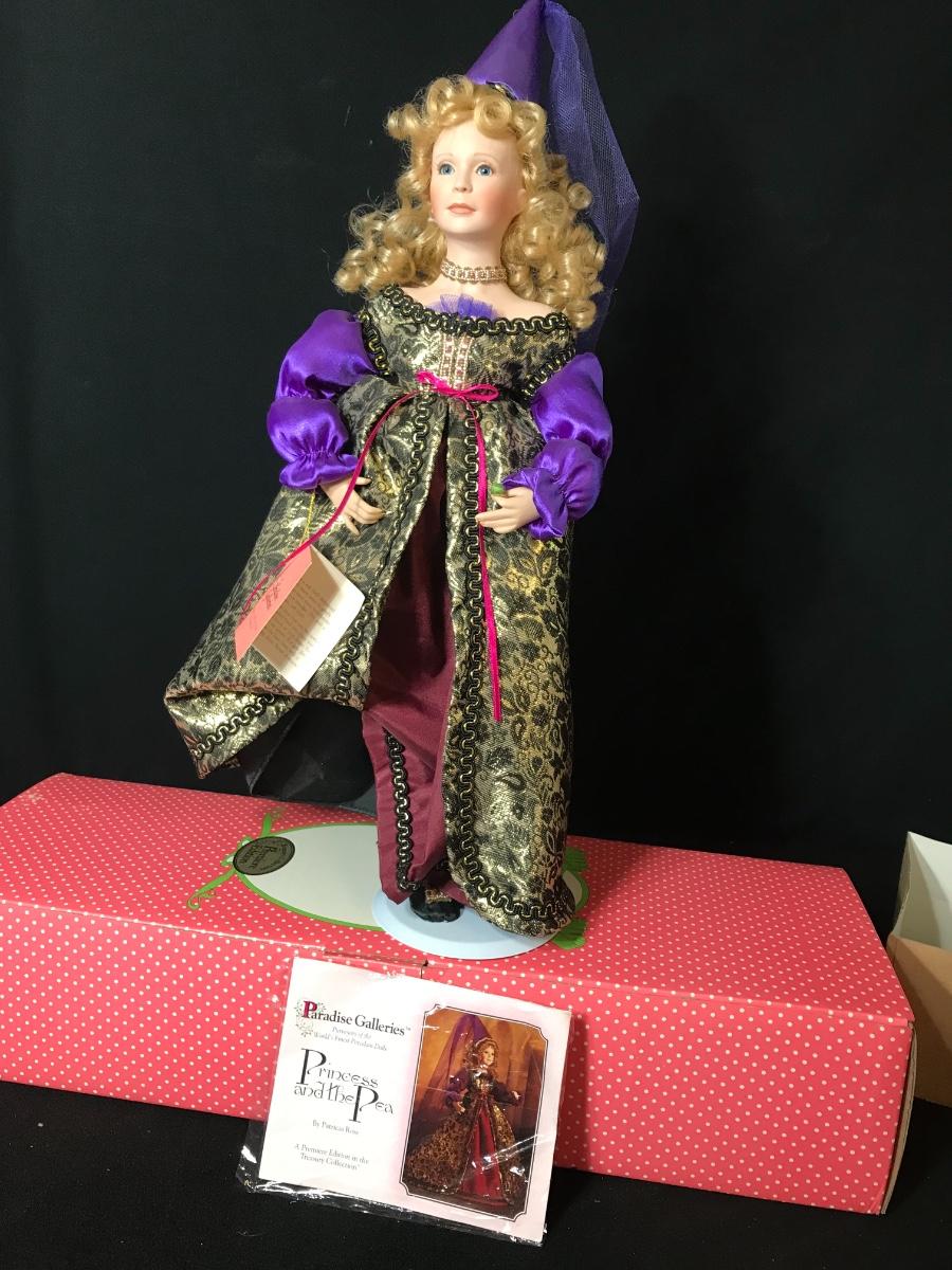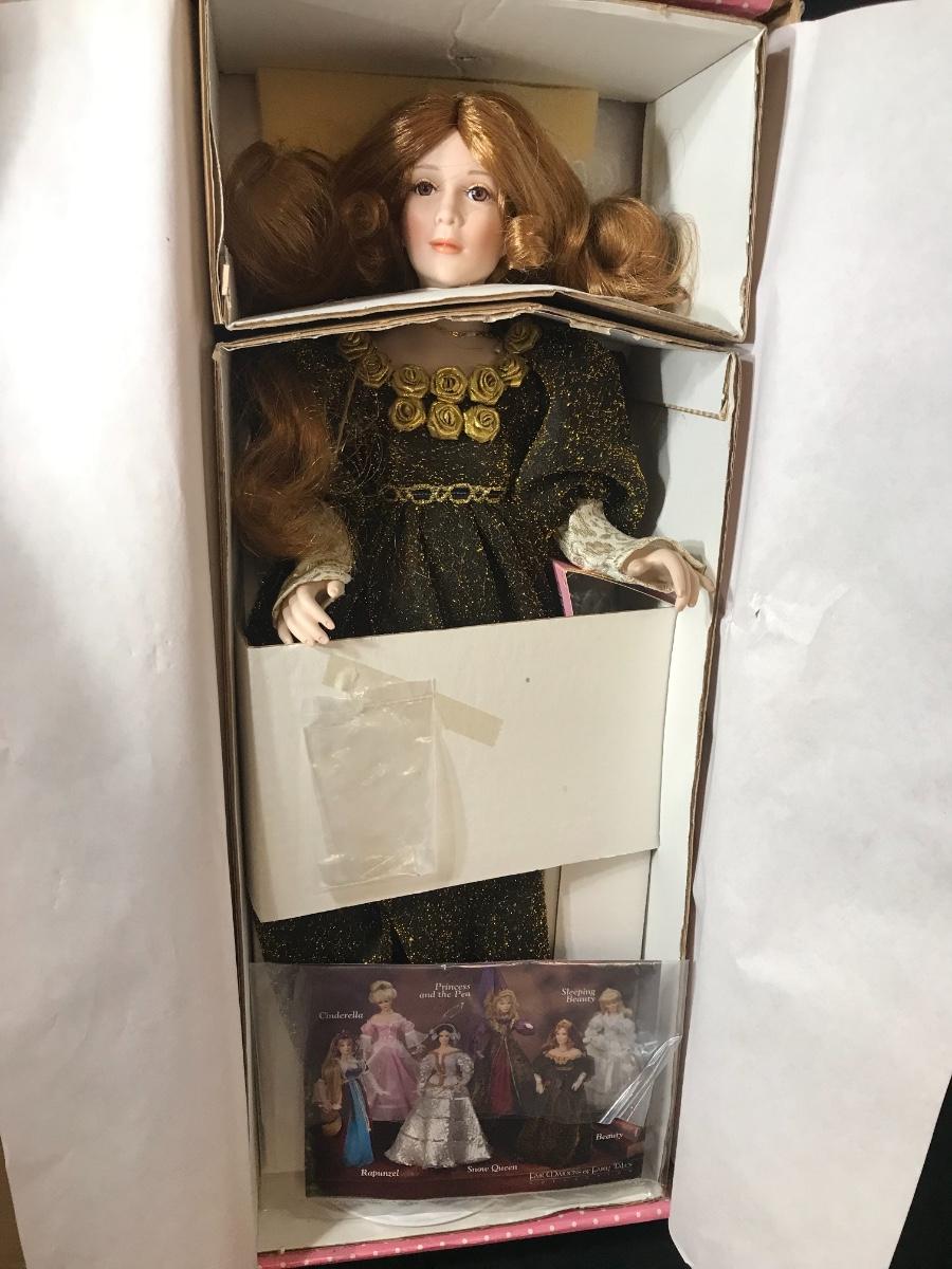 Paradise Galleries Treasury Collection Fairytale Dolls - Beauty, Bo-Peep, Little Red Riding Hood & Princess & The Pea. Please see all pictures as they are the best representation of the items. The pictures show condition, measurements if taken, and what is included in the lot. Due to the large amount that we photograph and the time frame, we are not always able to take measurements. All items unless noted, are pre-owned and have been used. Please bring packing materials for your items. If you purchased furniture, you must bring help. We do not allow one person to carry large furniture out on their own. Bring help, tools and a truck for your personal safety. Company policy. Thank you.