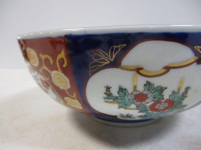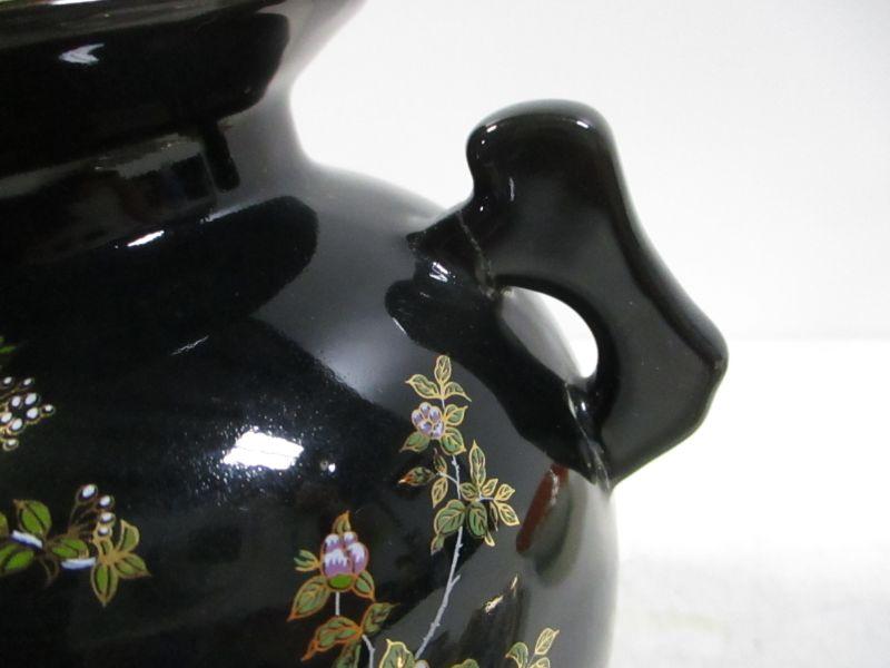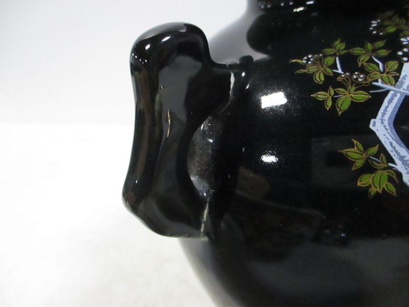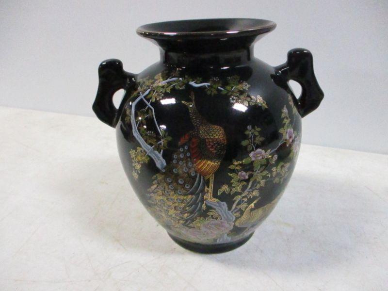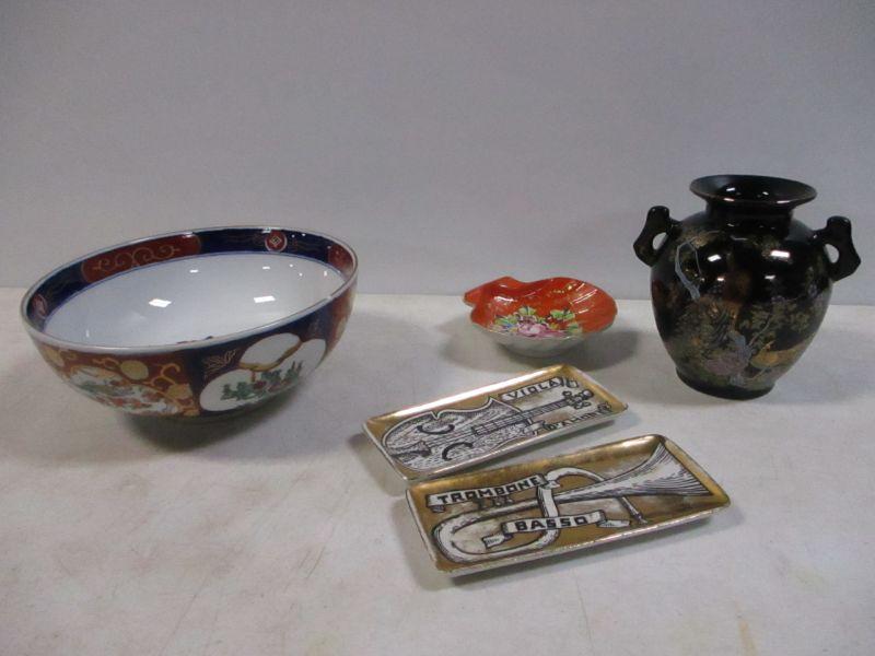 The Goldimari bowl does have a small chip, the black vase has been repaired