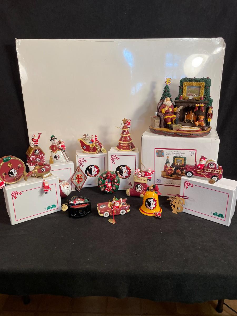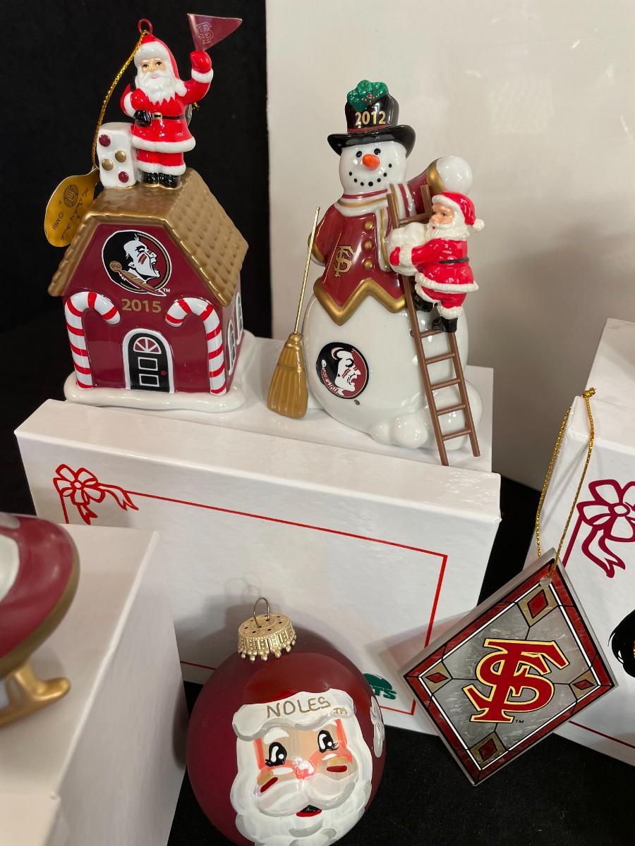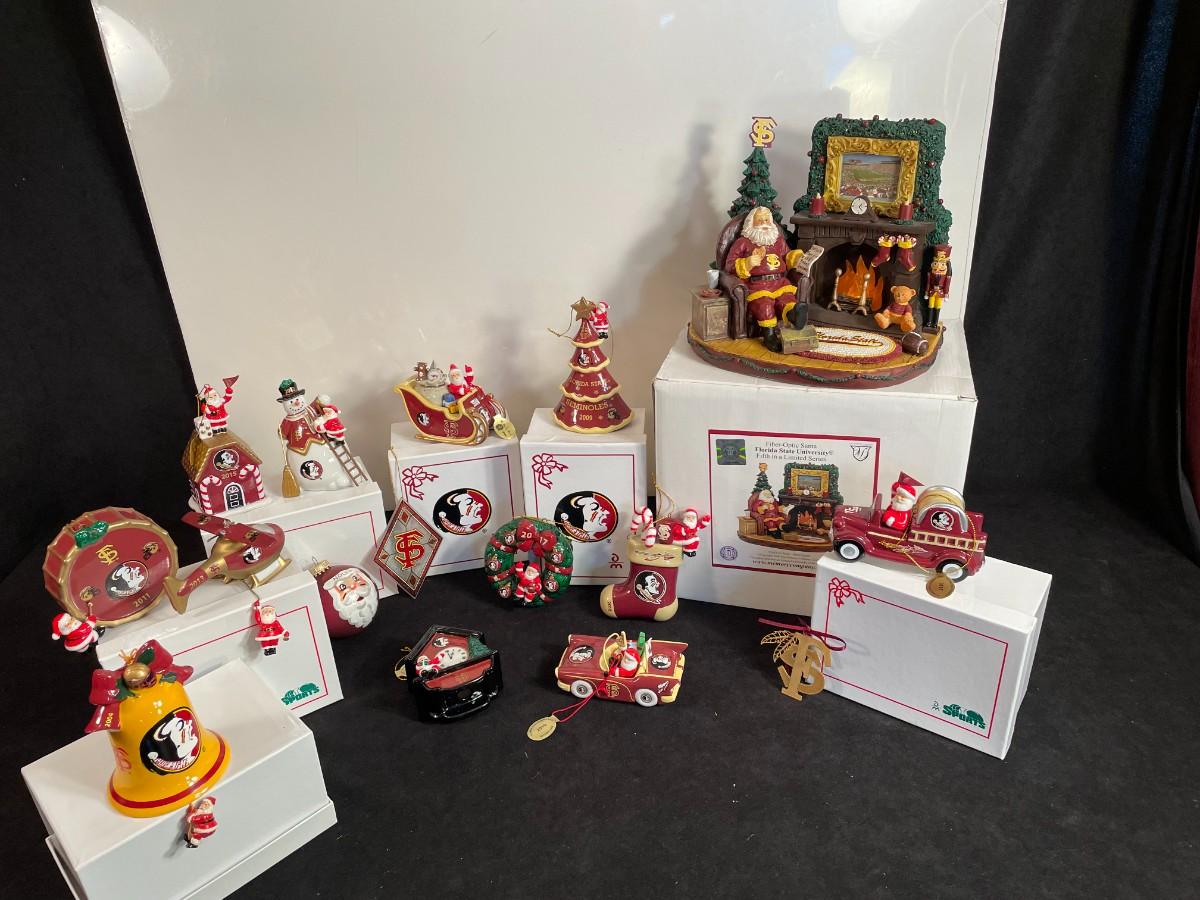 Lot 100  FSU Fiber Optic Christmas Statute and 15 Ornaments