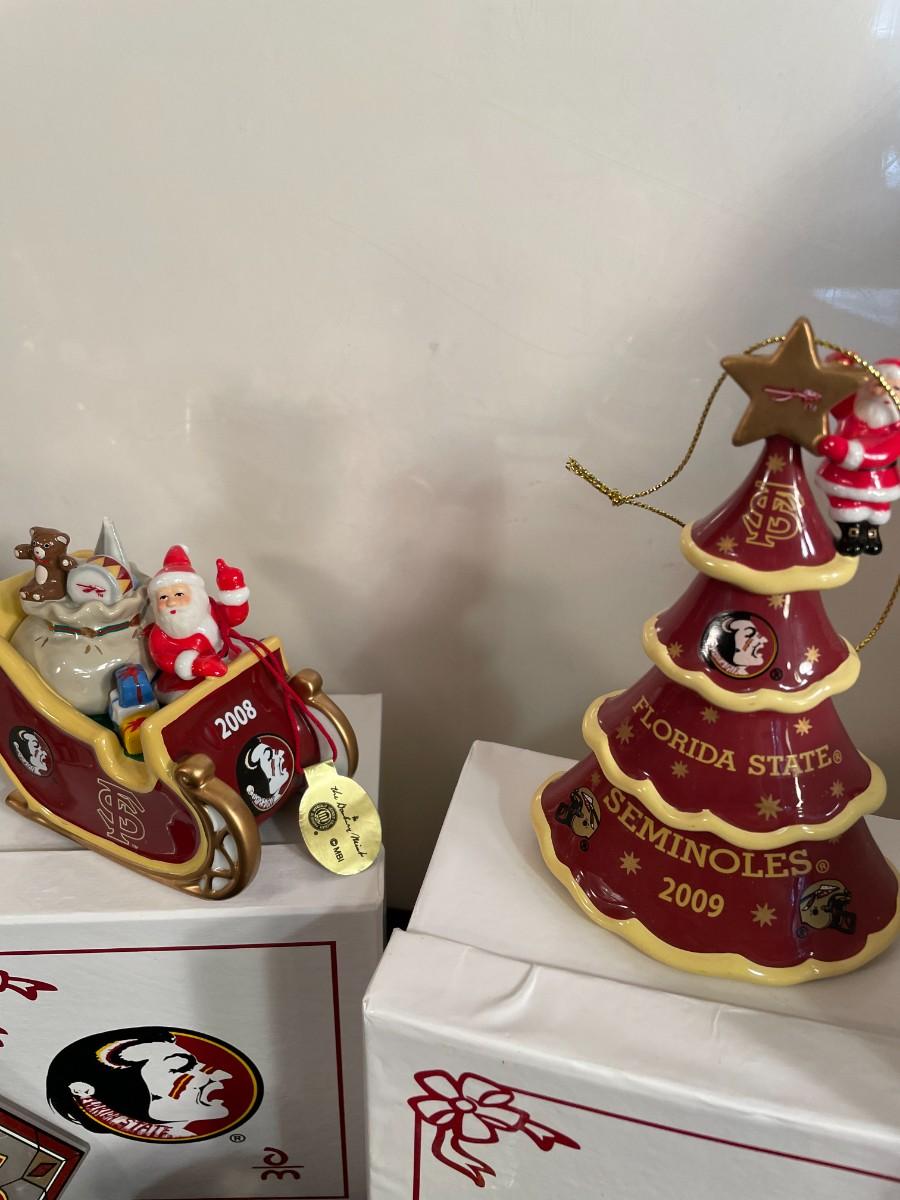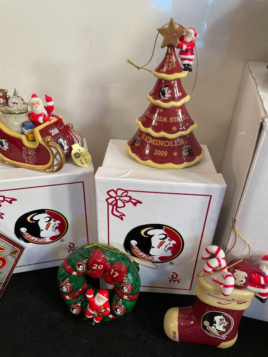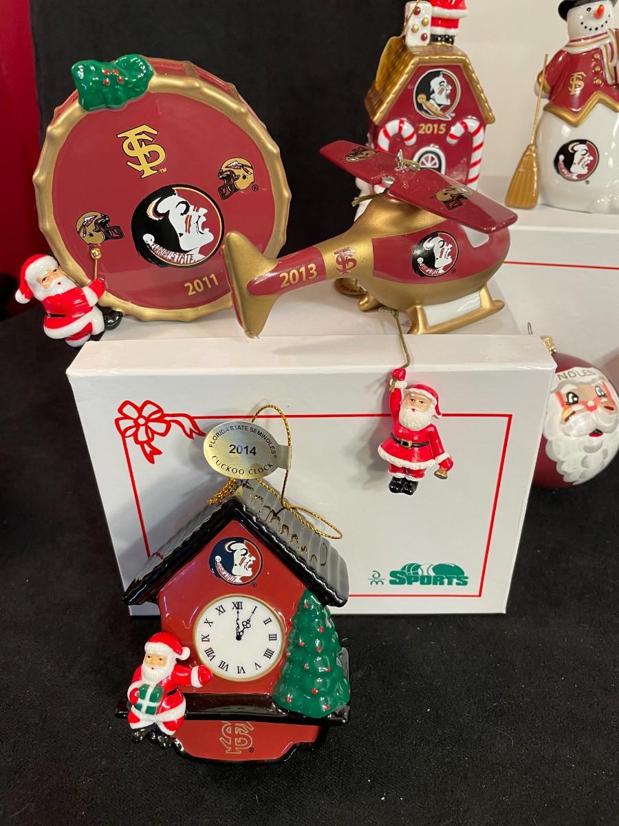 Lot 100  FSU Fiber Optic Christmas Statute and 15 Ornaments