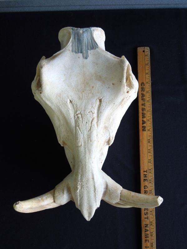 Here piggy piggy! The jaw is wired and opens slightly. some kind of metallic silver paint on cranial point. Makes for an interesting conversation. 16" long. No artificial parts.