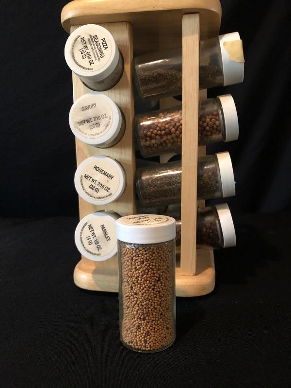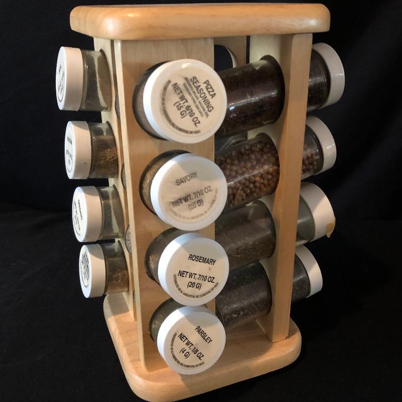 Spice rack measures 4” x 4” x 11”. Each bottle measures 2” D x 3.5 H. No shipping