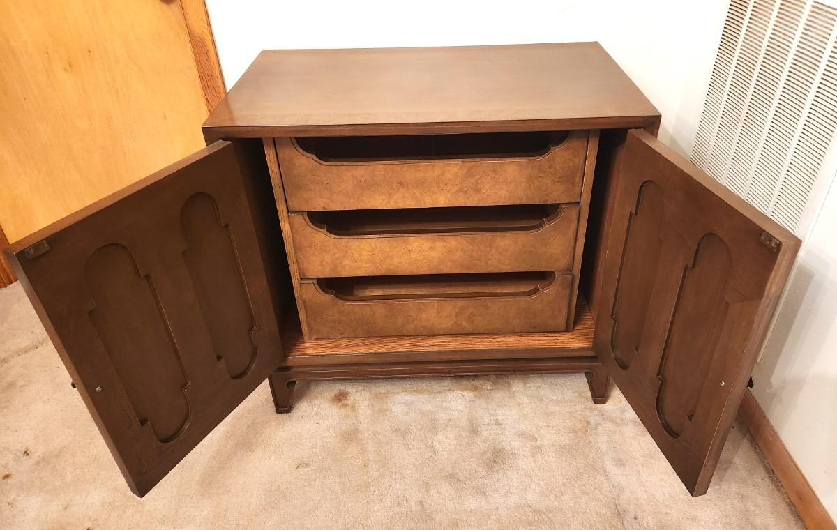 This Romweber MCM Server matches the China Cabinet in Lot #95. Excellent condition - 3 drawers - 33" x 19" x 31".