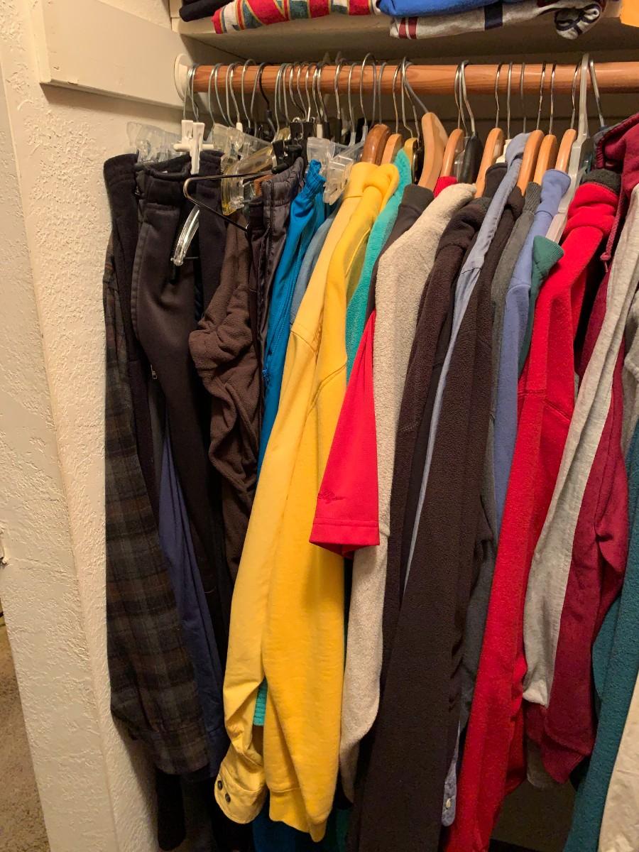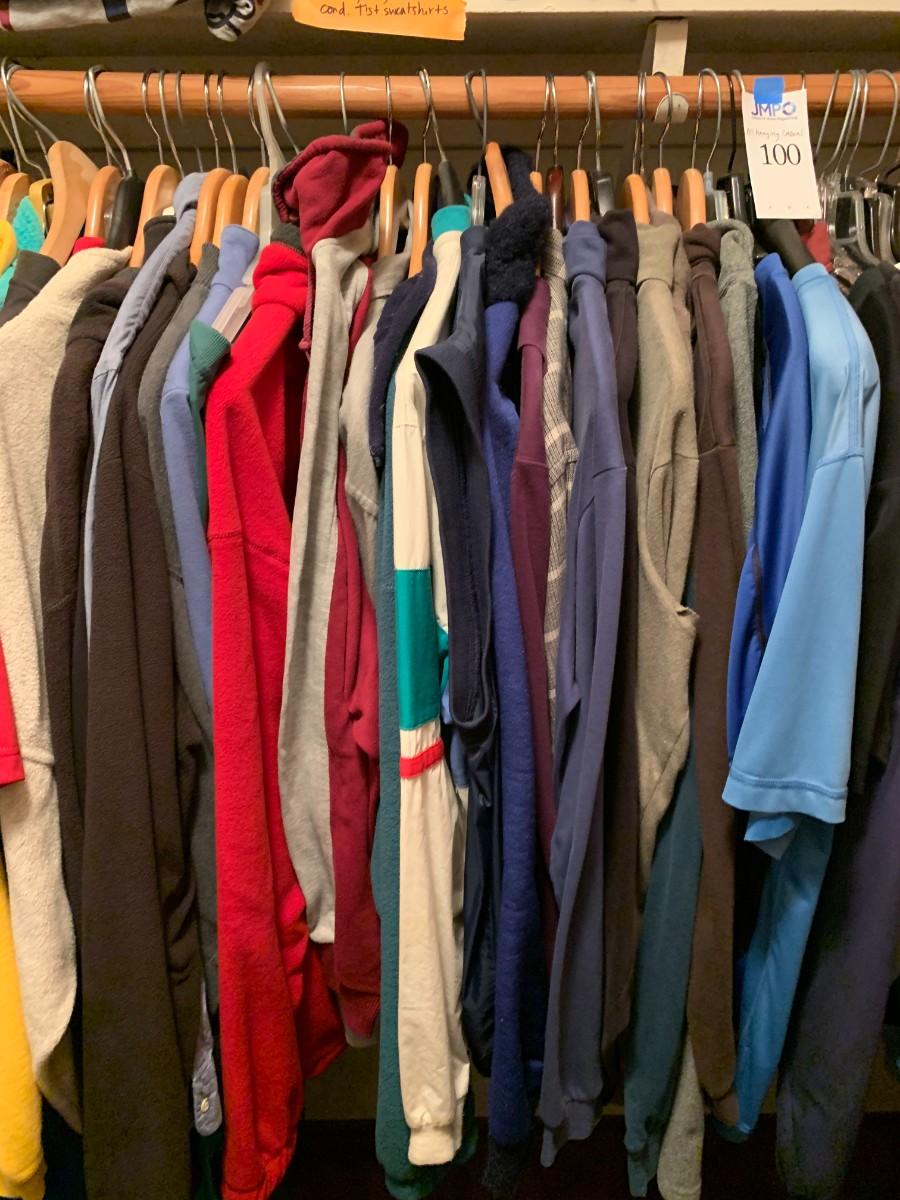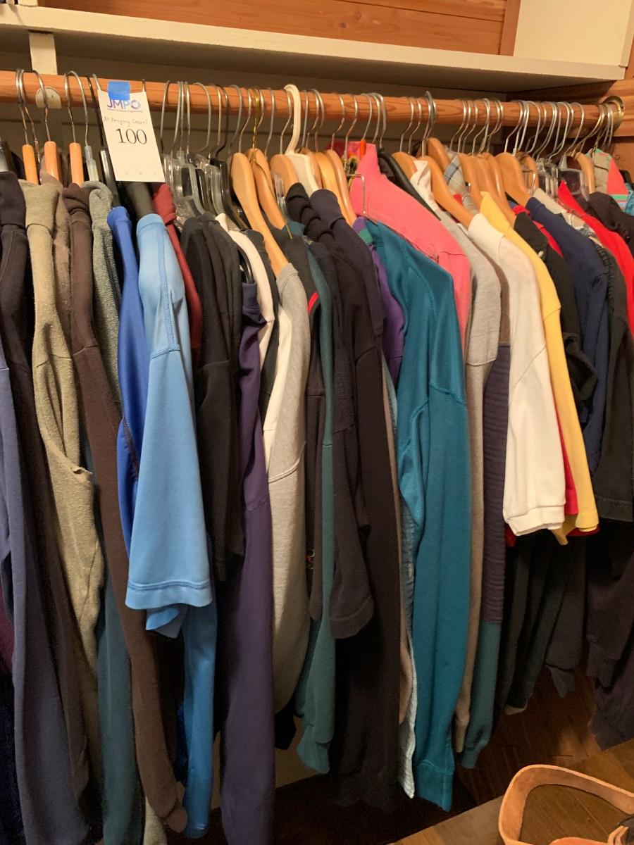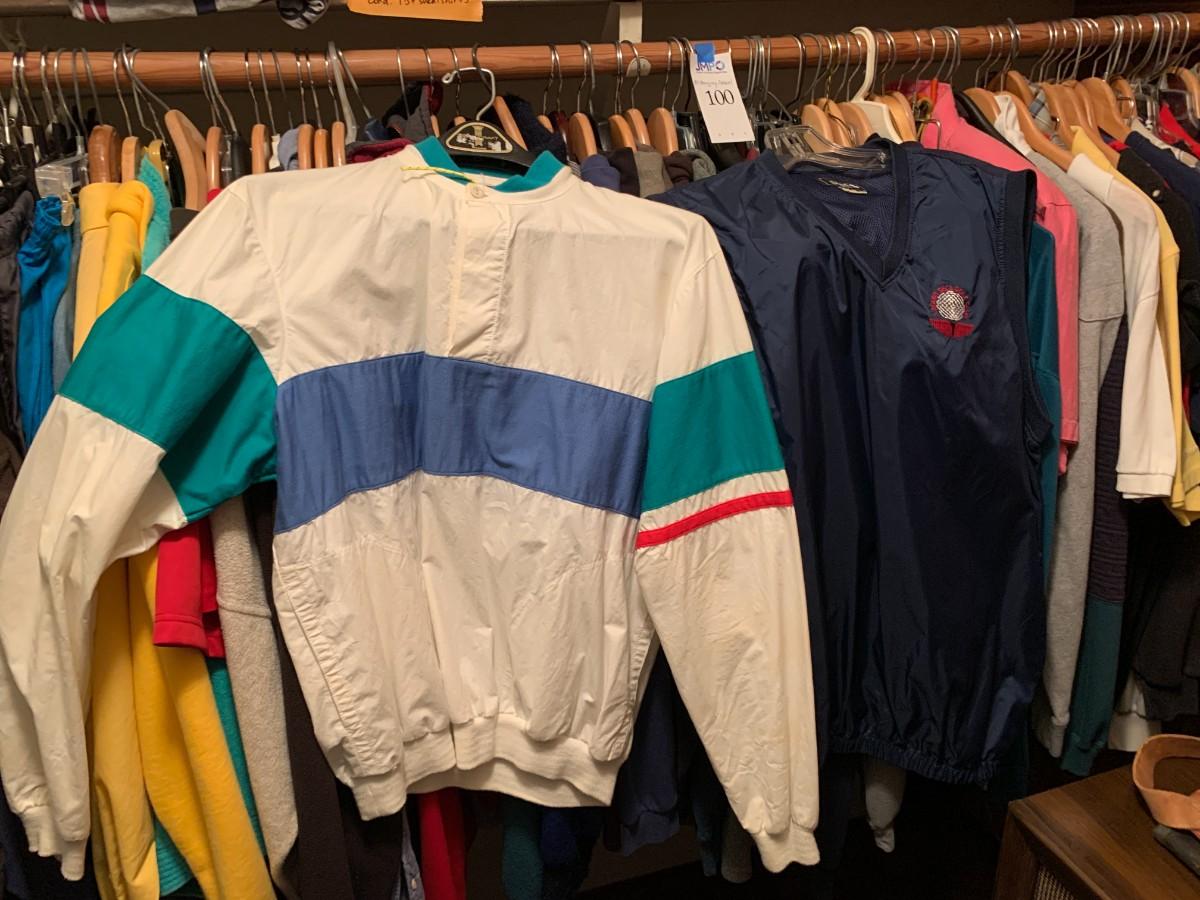 Athletic pants, fleece jackets and vests. Long and short sleeve shirts including t-shirts and pullover sweatshirts. Pendleton button down. Some 80s classic styles, most are modern.