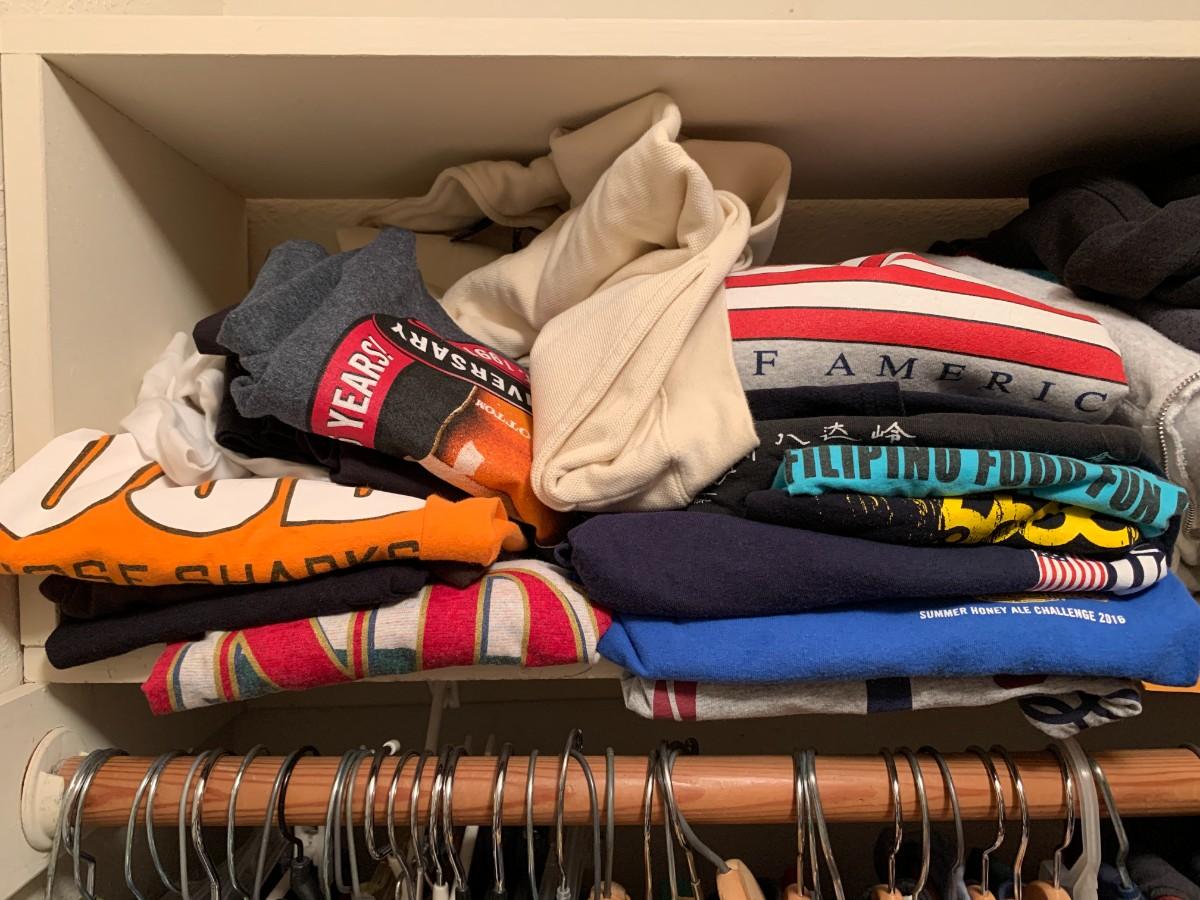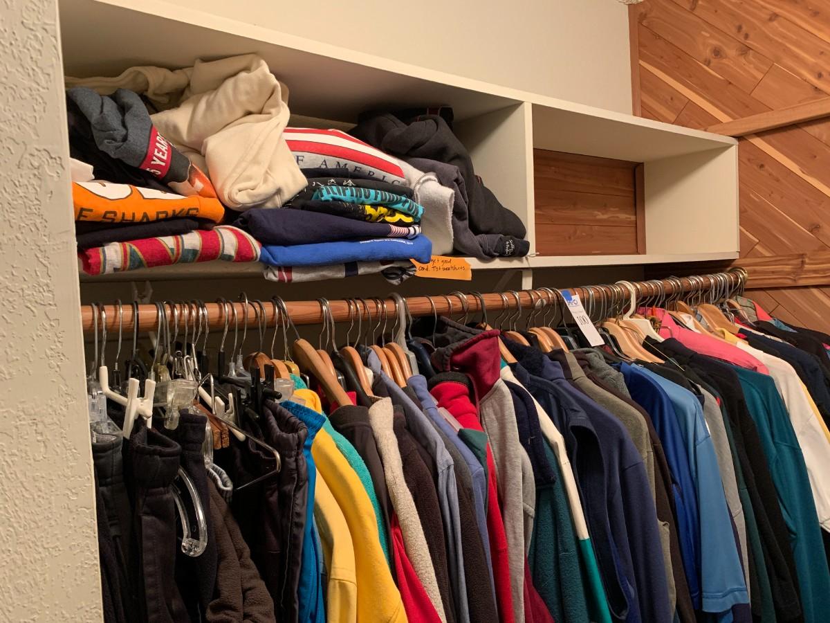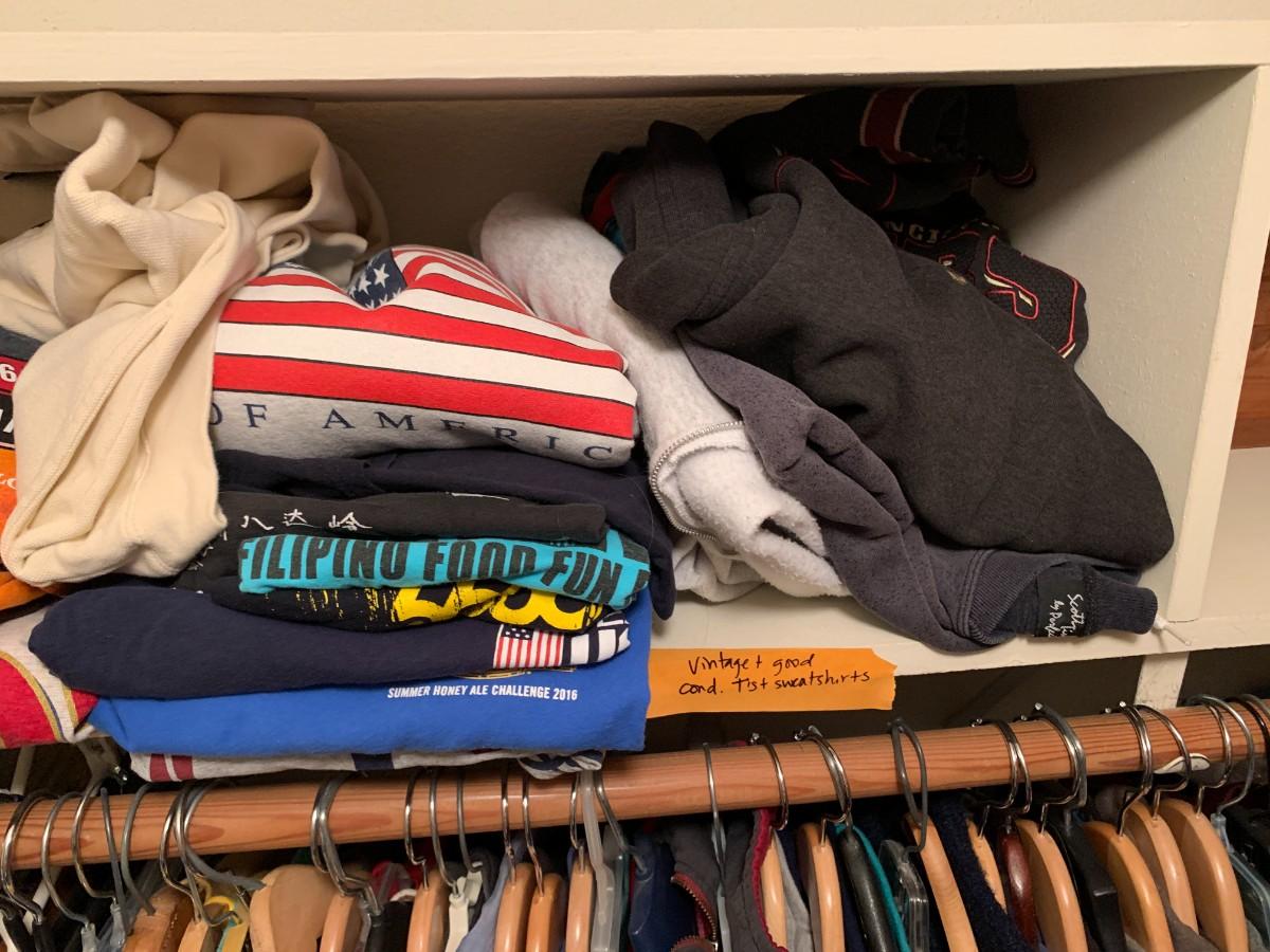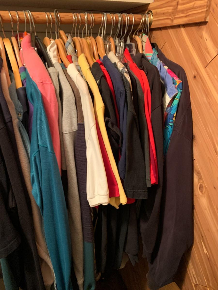 Athletic pants, fleece jackets and vests. Long and short sleeve shirts including t-shirts and pullover sweatshirts. Pendleton button down. Some 80s classic styles, most are modern.