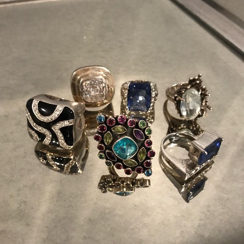 Superb assortment of jewelry here with some fabulous finds. There are three necklaces here that are marked 925 and also included are a lovely assortment of rings with different designs and stones. Check out our images for more details on these timelessly elegant pieces. The last four rings pictured are not marked and not likely sterling or gold.