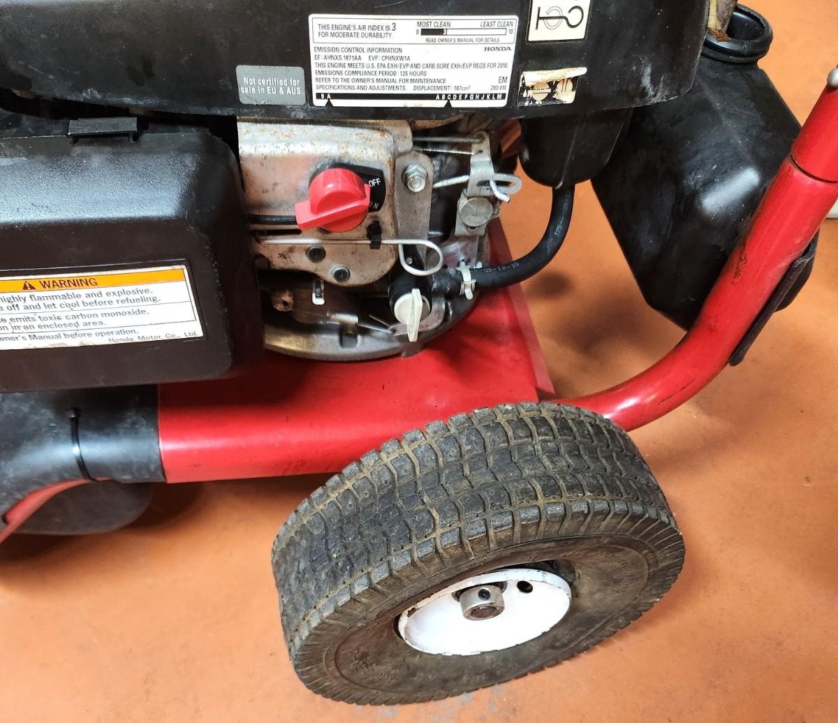 Simpson Pressure Washer - Model MSV3100 - 3100 PSI - works. Left tire is on but should be replaced.