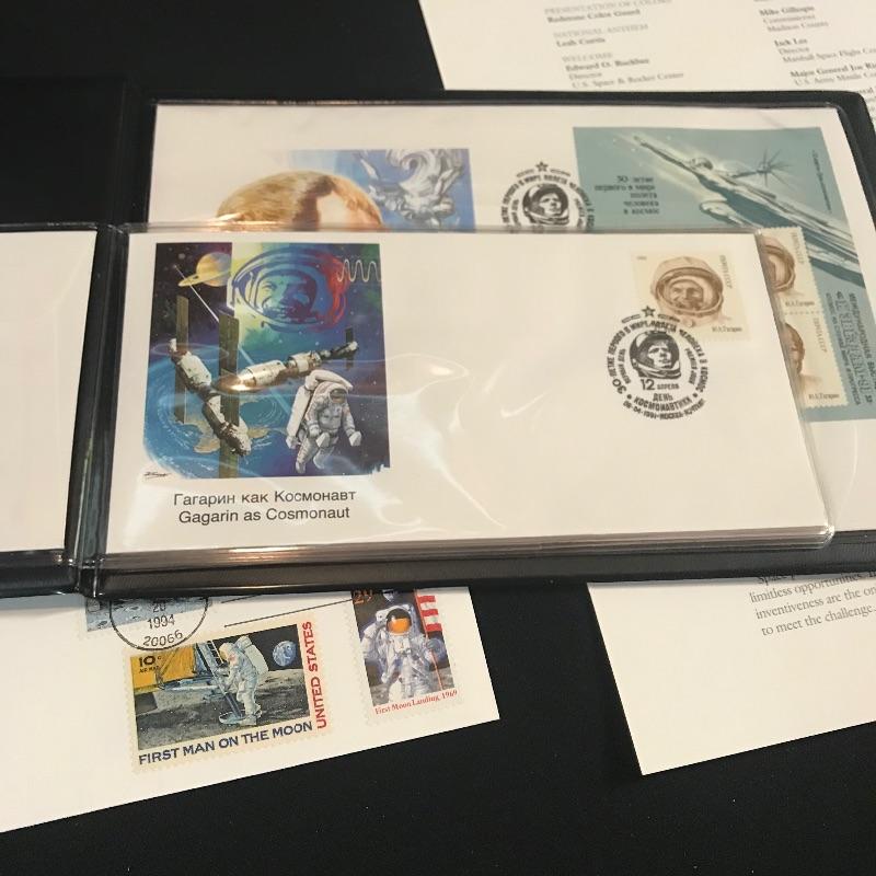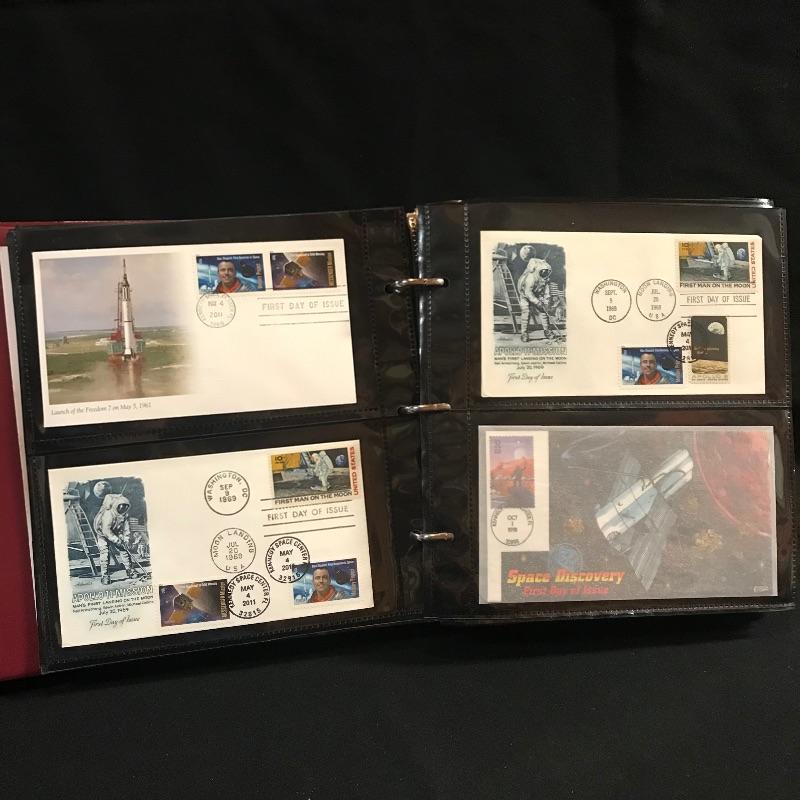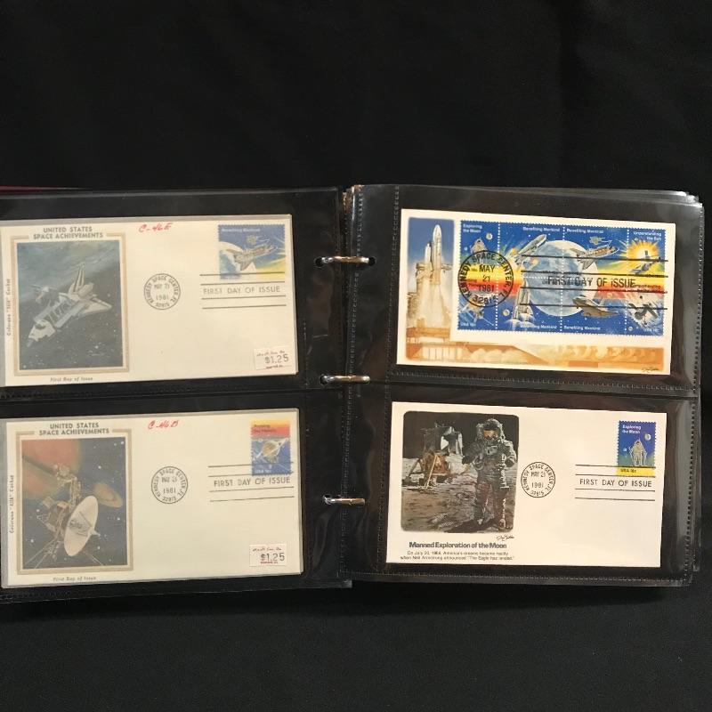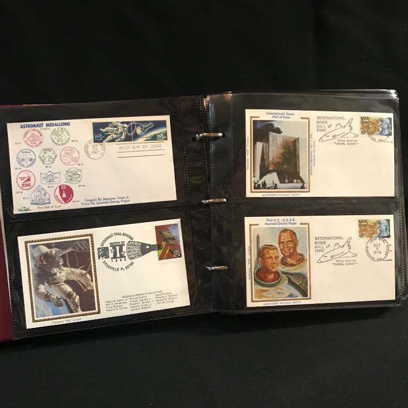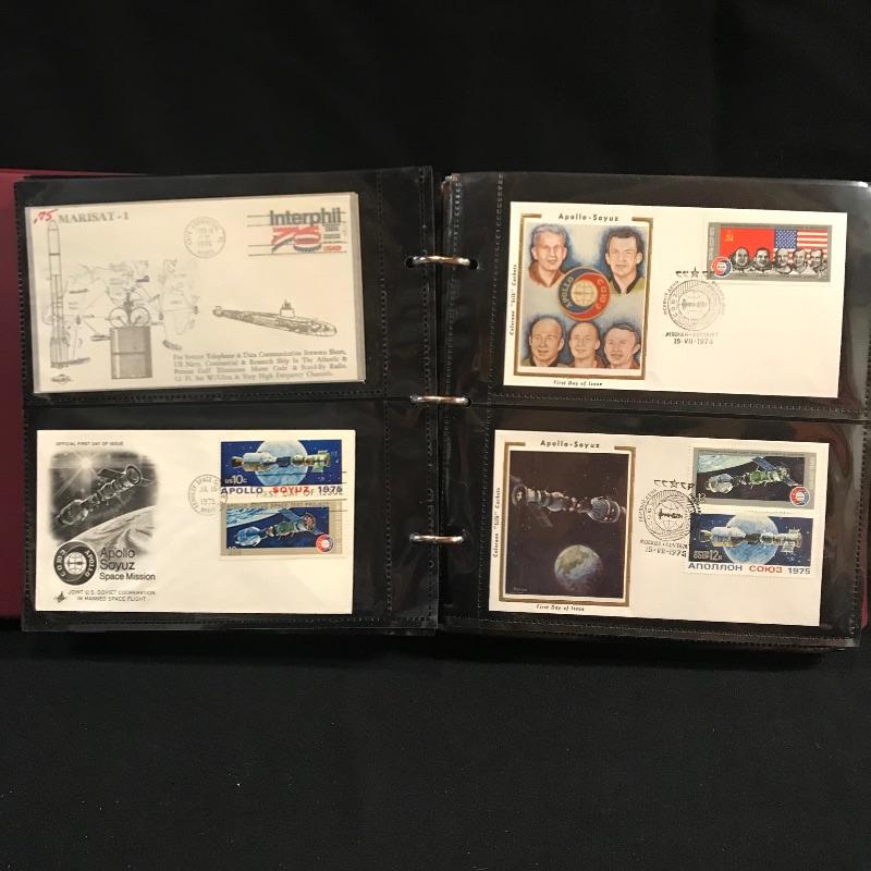 Large collection of cancelled commemorative space cachet and 1st day covers. Lot includes two almost full maroon binders with a Fleetwood book of commemorative USSR/Russian pieces. See photos for examples.