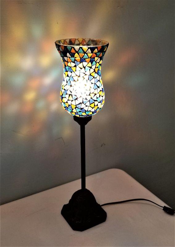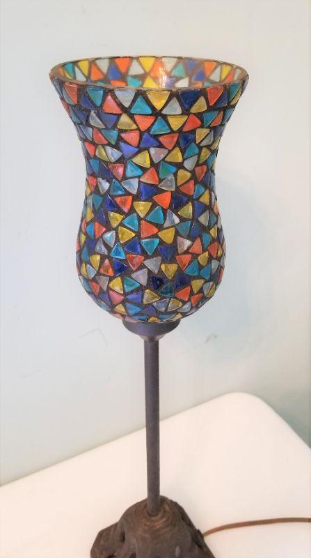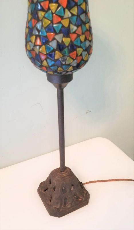 Pretty Mosaic style table lamp - good working condition. Switch on cord. 20.25" tall.