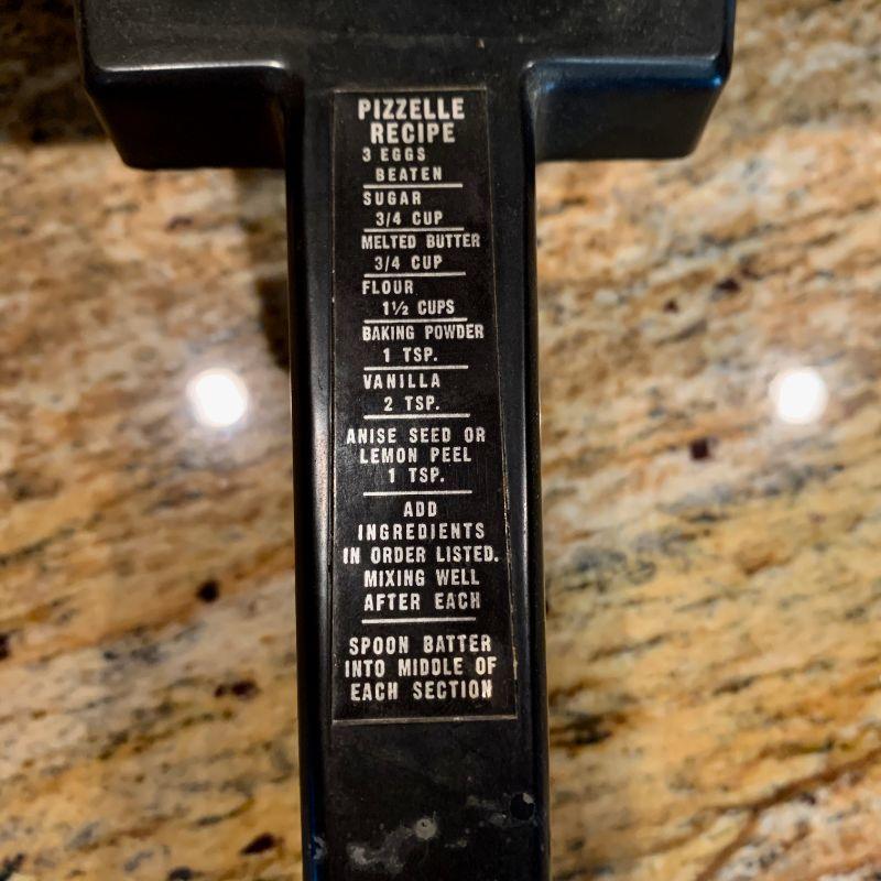 Make those delicious Italian cookies with this Rival pizzelle press. Recipe on the handle. Never used. Cord is missing, but replacements can be found online.