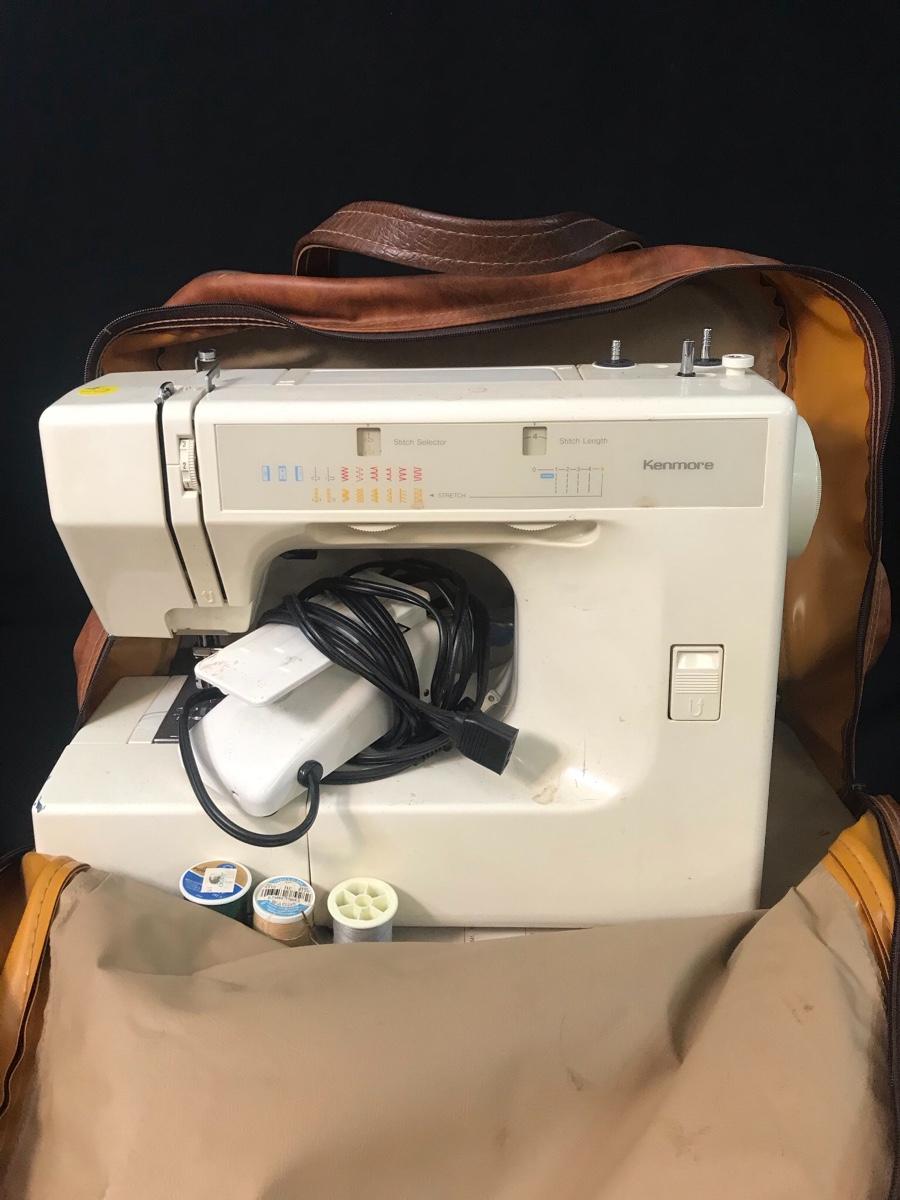 Vintage Kenmore Sewing Machine In Singer Travel Bag. Untested. Please see all pictures as they are the best representation of the items. The pictures show condition, measurements if taken, and what is included in the lot. Due to the large amount that we photograph and the time frame, we are not always able to take measurements. All items unless noted, are pre-owned and have been used. If you purchased furniture, you must bring help. We do not allow one person to carry large furniture out on their own. Bring help, tools and a truck for the safety of our client’s homes, and your personal safety. Company policy. Thank you.