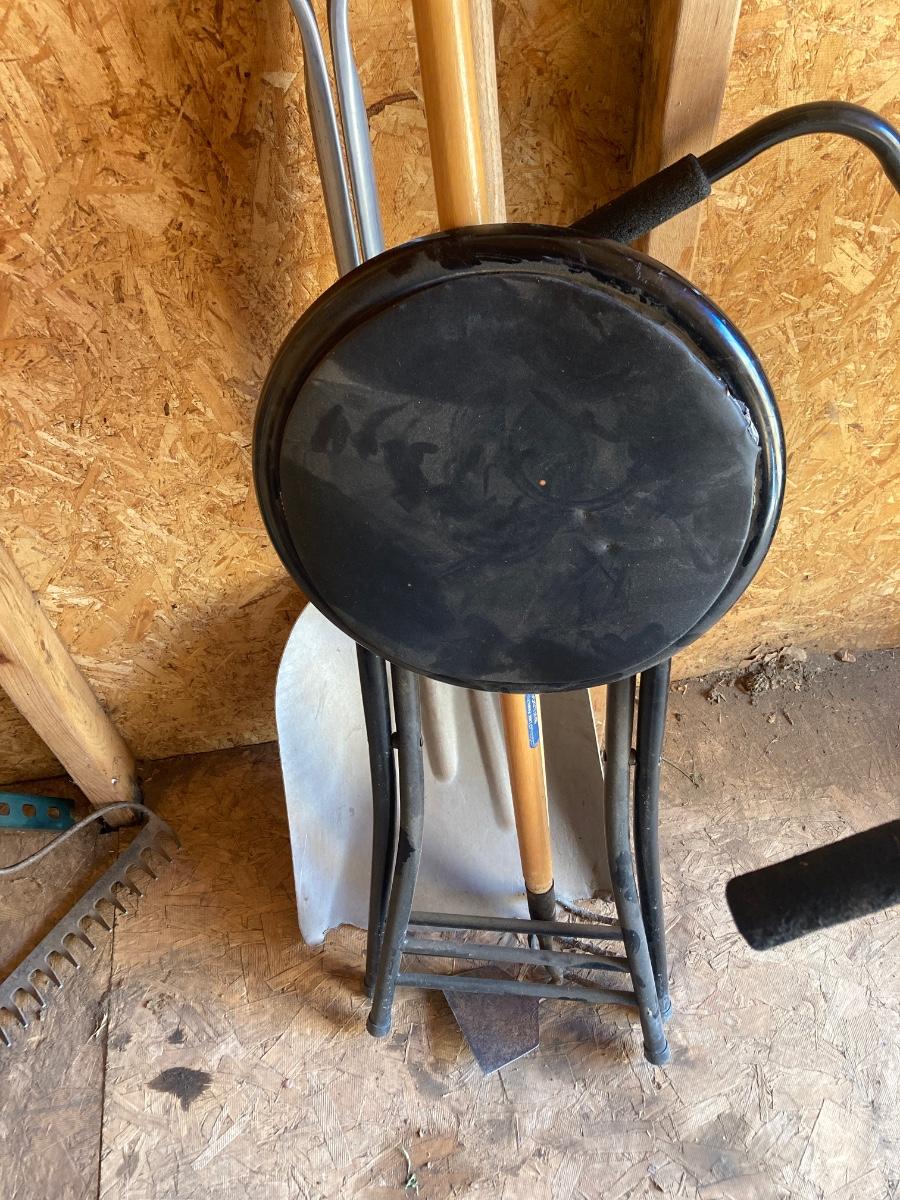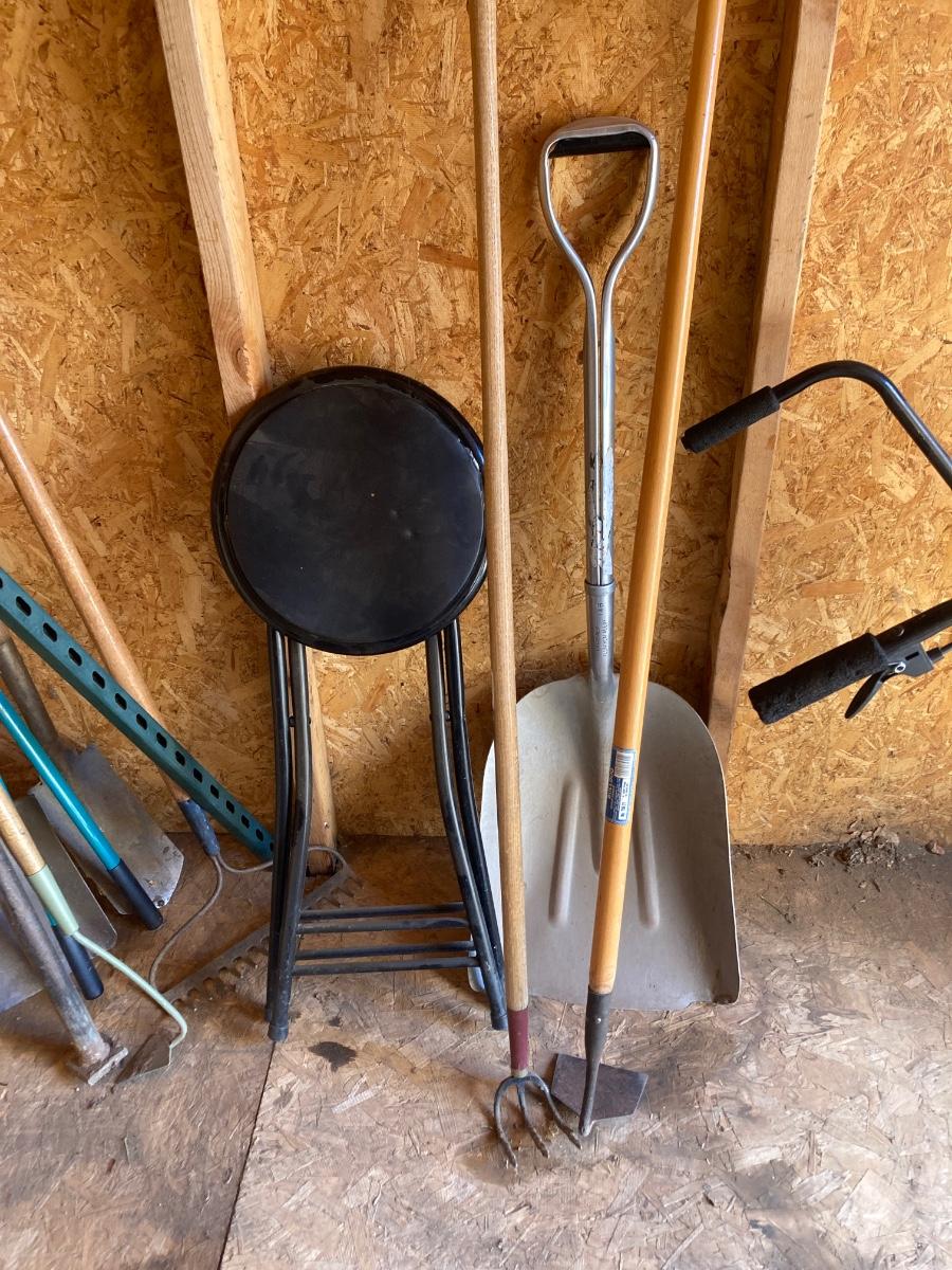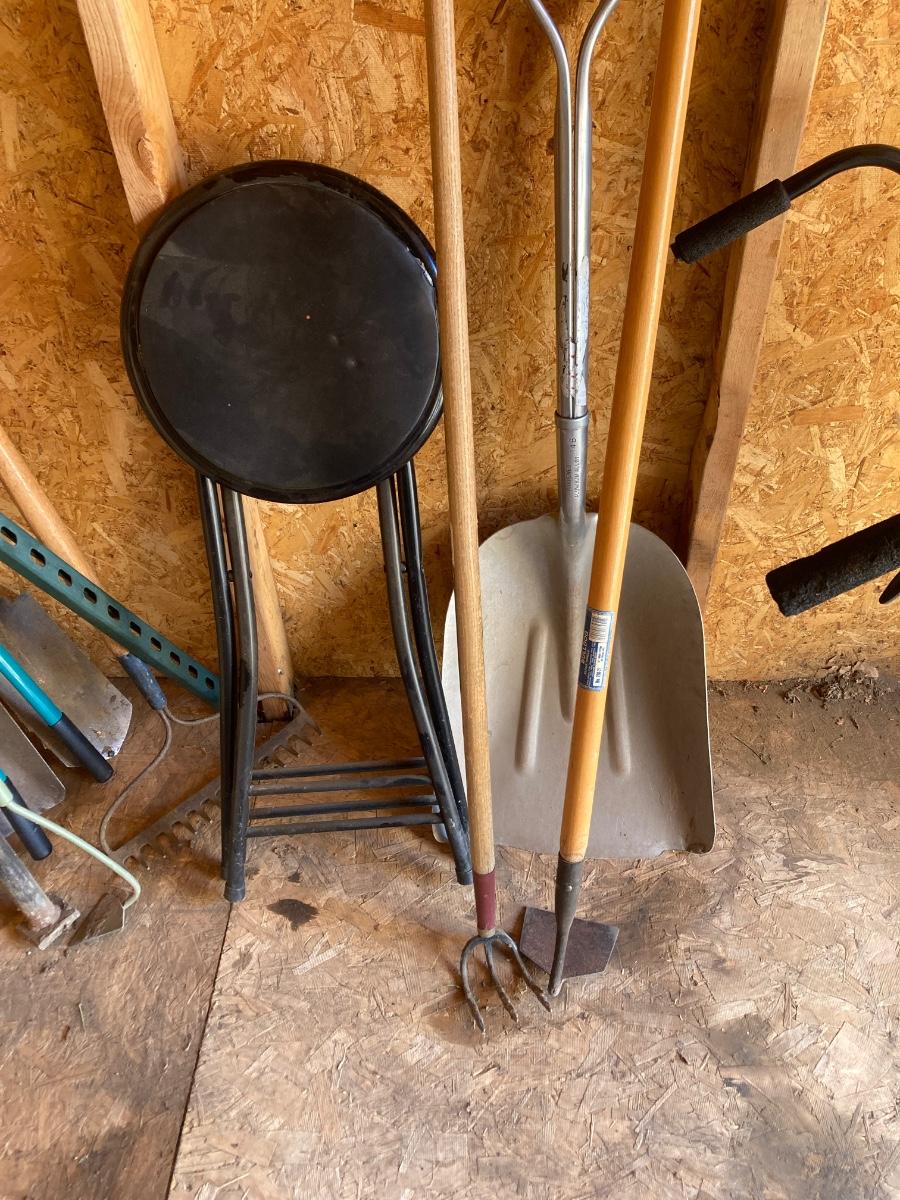 LOT 100 YARD TOOLS AND STOOL (Shed)